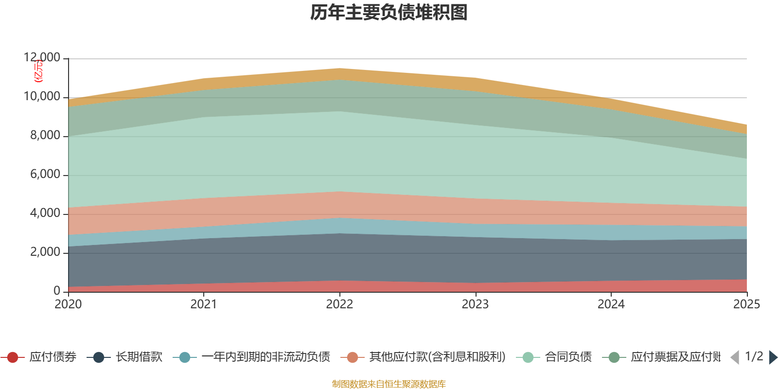 负债重大变化方面,截至2025年末,公司合同负债较上年末减少26.35%,占公司总资产比重下降4.32个百分点;长期借款较上年末减少0.37%,占公司总资产比重上升1.86个百分点;应付债券较上年末增加12.65%,占公司总资产比重上升1.12个百分点;其他流动负债较上年末减少29.34%,占公司总资产比重下降0.46个百分点。