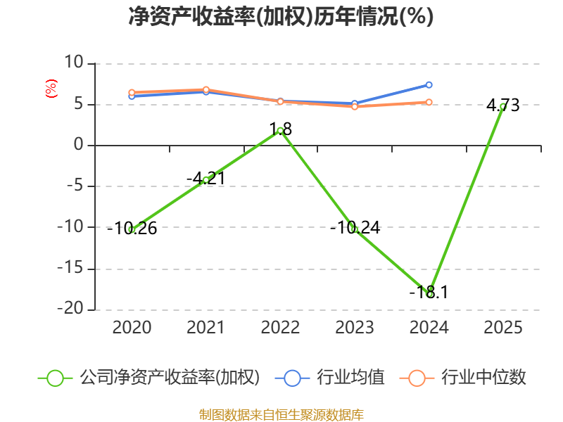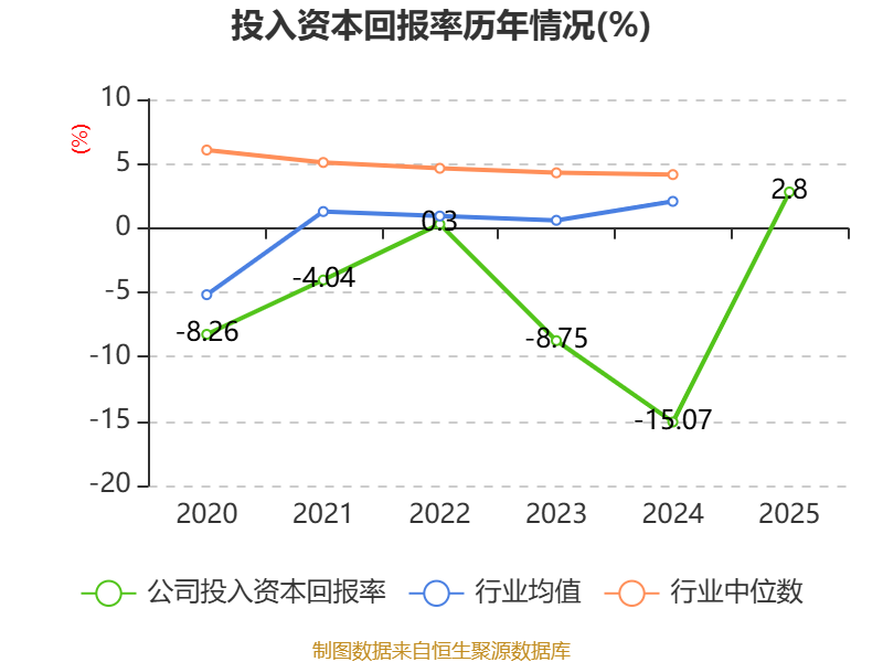 数据显示,2025年公司加权平均净资产收益率为4.73%,较上年同期上升22.83个百分点。公司2025年投入资本回报率为2.8%,较上年同期上升17.87个百分点。