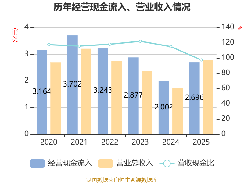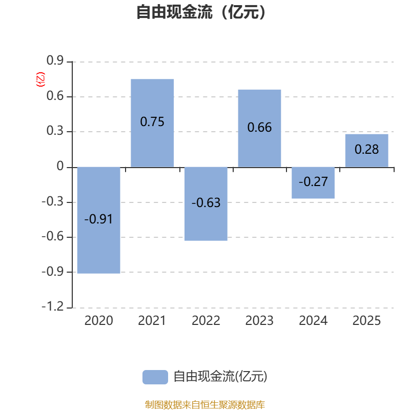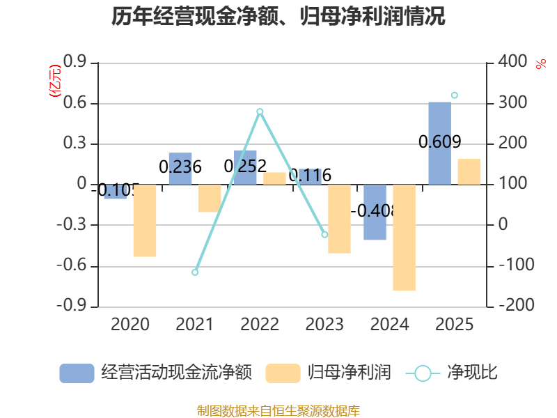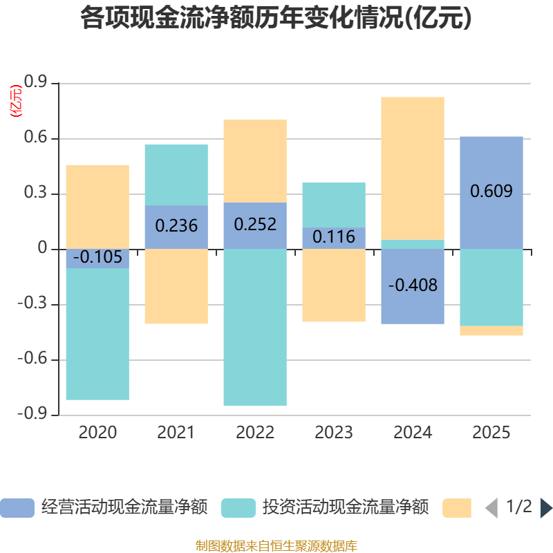 截至2025年,公司经营活动现金流净额为6094.93万元,同比增加1.02亿元;筹资活动现金流净额-512.09万元,同比减少8245.75万元;投资活动现金流净额-4192.64万元,上年同期为503.83万元。
