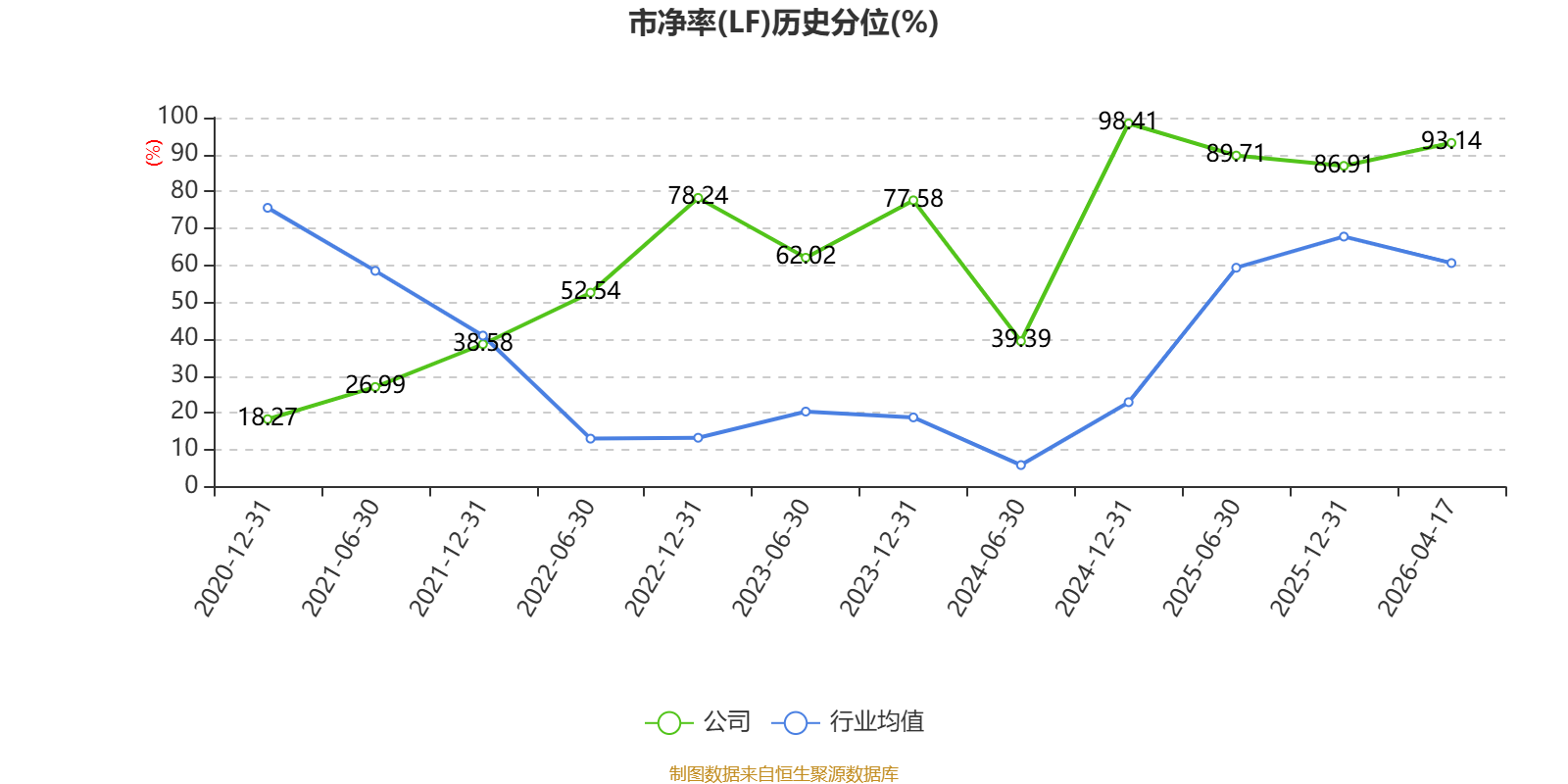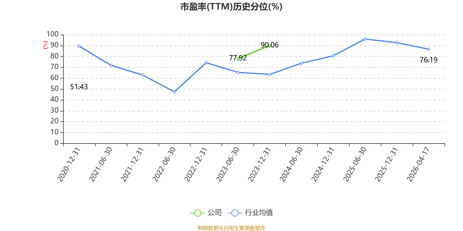市盈率、市净率为负时,不显示当期分位数,会导致折线图中断。
