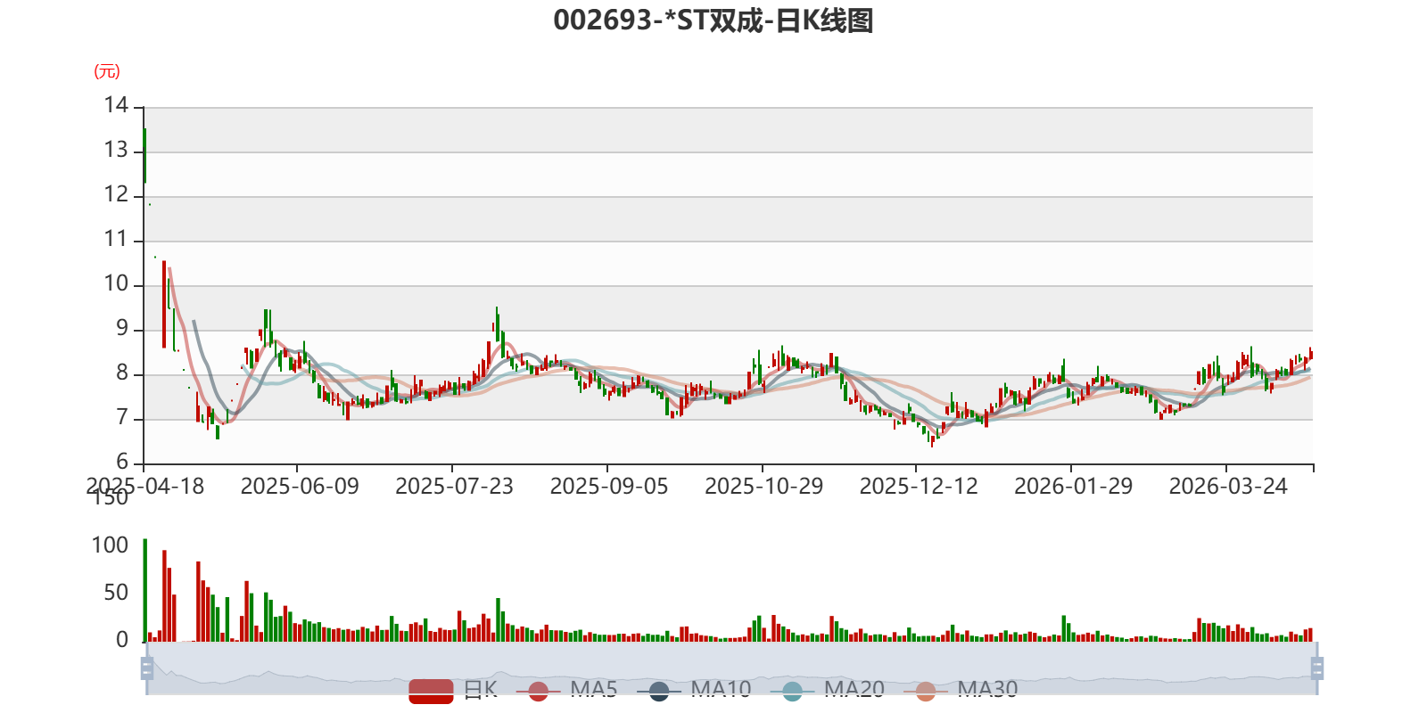 以4月17日收盘价计算,*ST双成目前市盈率(TTM)约为185.1倍,市净率(LF)约8.55倍,市销率(TTM)约12.74倍。