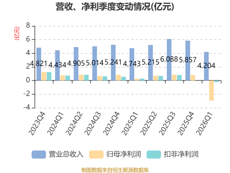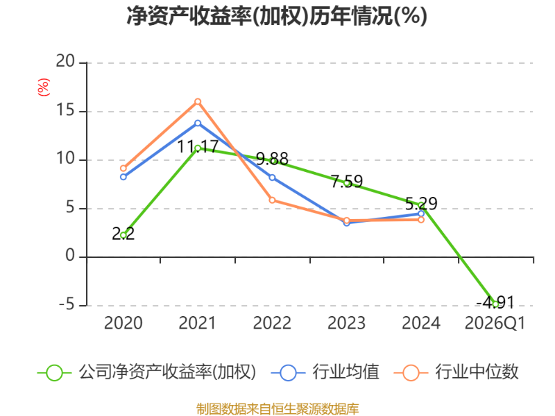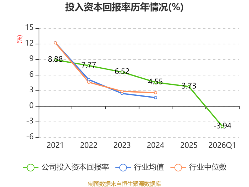 盈利能力方面, 2026年一季度公司加权平均净资产收益率为-4.91%,同比下降5.4个百分点。公司2026年第一季度投入资本回报率为-3.94%,较上年同期下降4.36个百分点。
