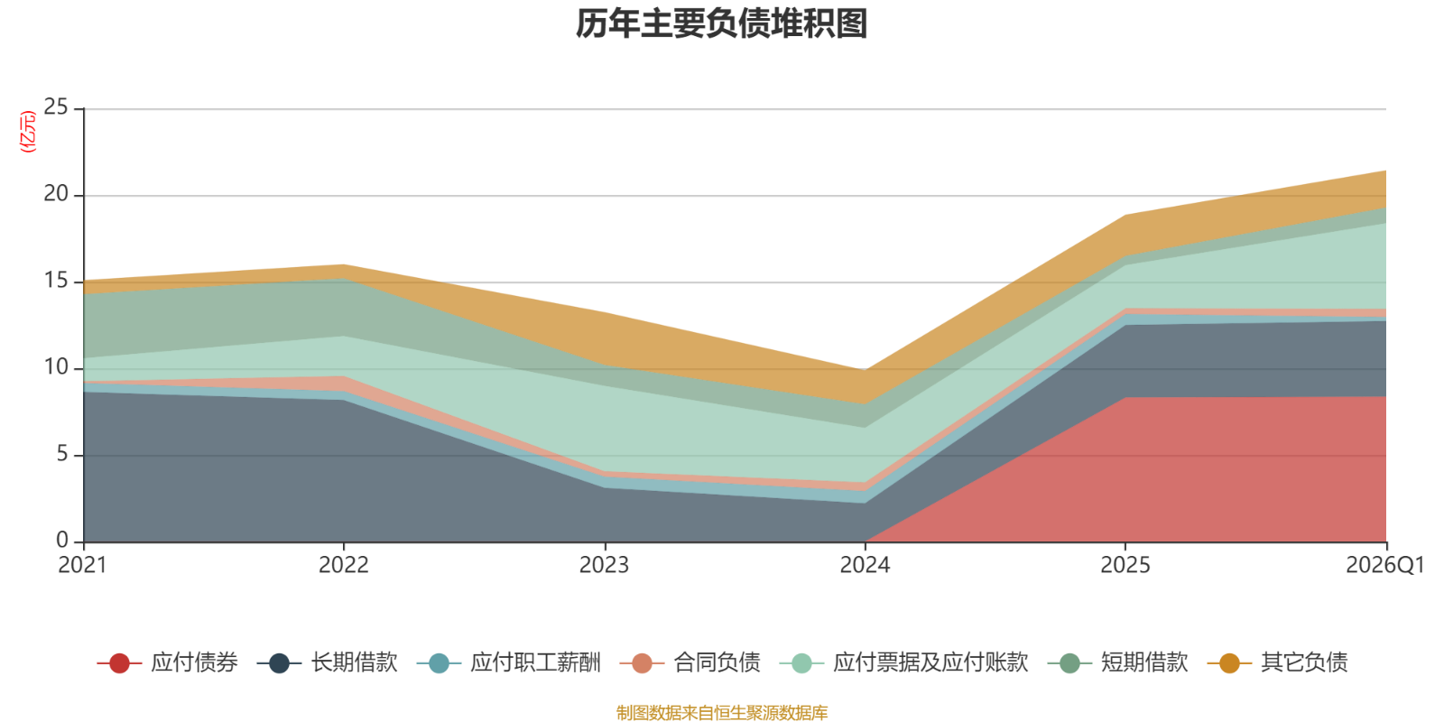 负债重大变化方面,截至2026年一季度末,公司应付票据及应付账款较上年末增加98.93%,占公司总资产比重上升3.1个百分点;应付职工薪酬较上年末减少63.55%,占公司总资产比重下降0.51个百分点;短期借款较上年末增加68.36%,占公司总资产比重上升0.46个百分点;长期借款较上年末增加4.56%,占公司总资产比重上升0.26个百分点。