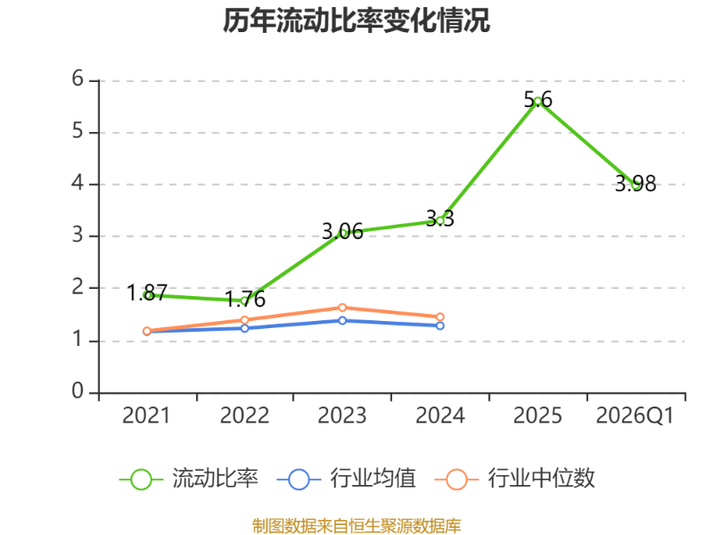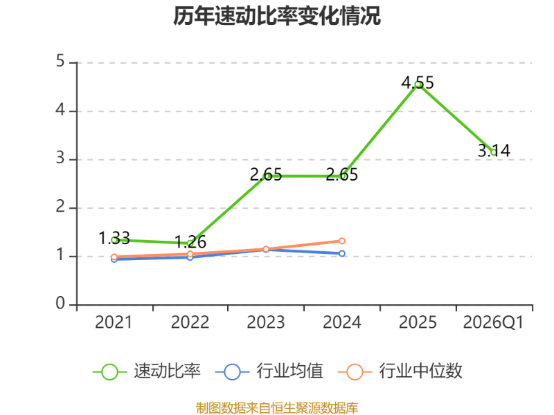 2026年第一季度,公司流动比率为3.98,速动比率为3.14。