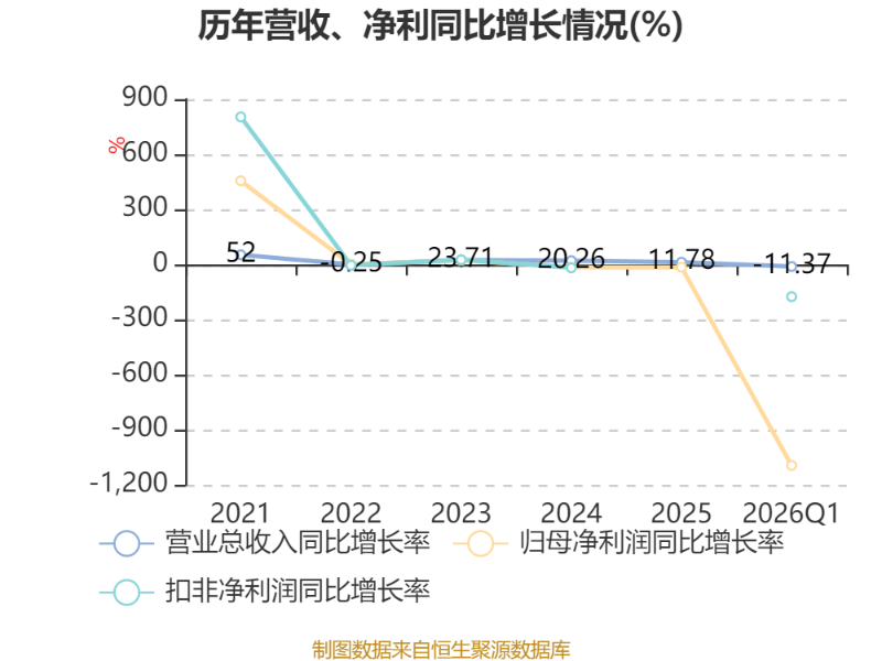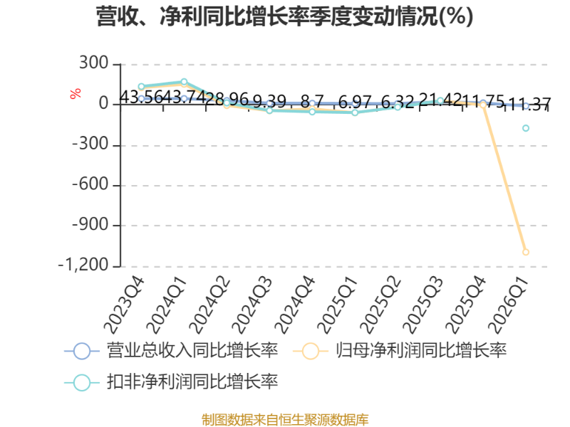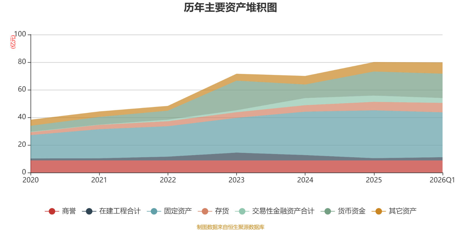 资产重大变化方面,截至2026年一季度末,公司固定资产较上年末减少6.11%,占公司总资产比重下降2.52个百分点;交易性金融资产合计较上年末减少22.29%,占公司总资产比重下降1.26个百分点;其他非流动资产较上年末增加394.7%,占公司总资产比重上升1.08个百分点;存货较上年末增加11.64%,占公司总资产比重上升0.92个百分点。