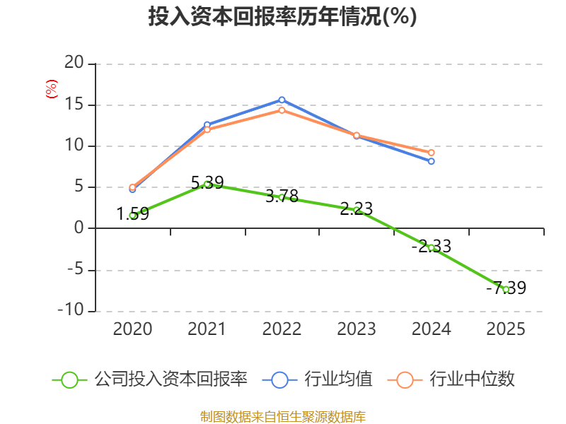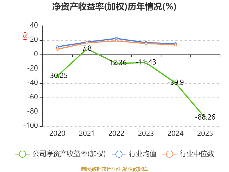 数据显示,2025年公司加权平均净资产收益率为-88.26%,较上年同期下降48.36个百分点。公司2025年投入资本回报率为-7.39%,较上年同期下降5.06个百分点。