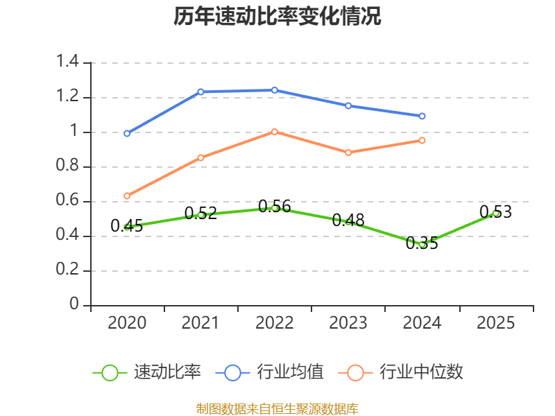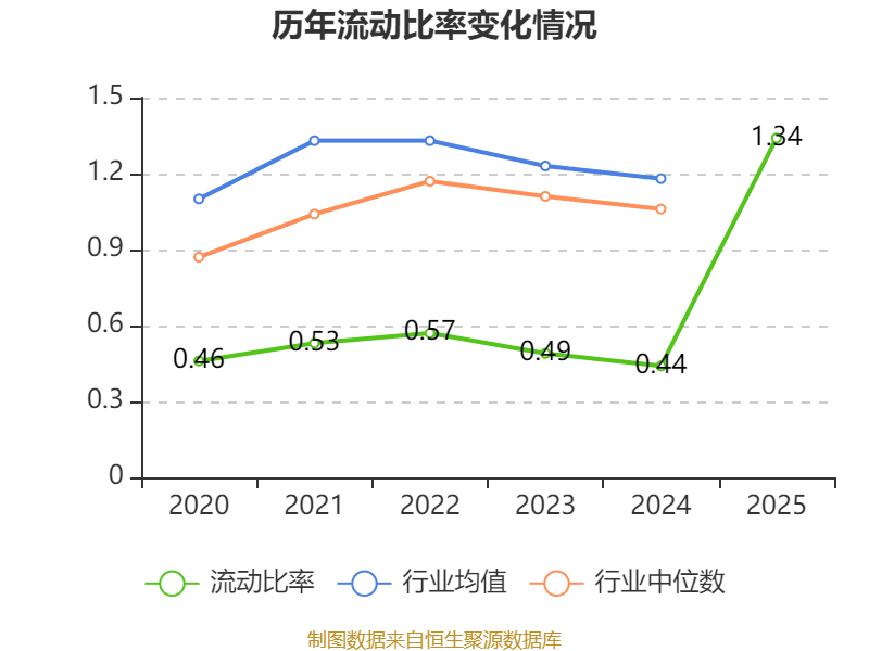 2025年,公司流动比率为1.34,速动比率为0.53。