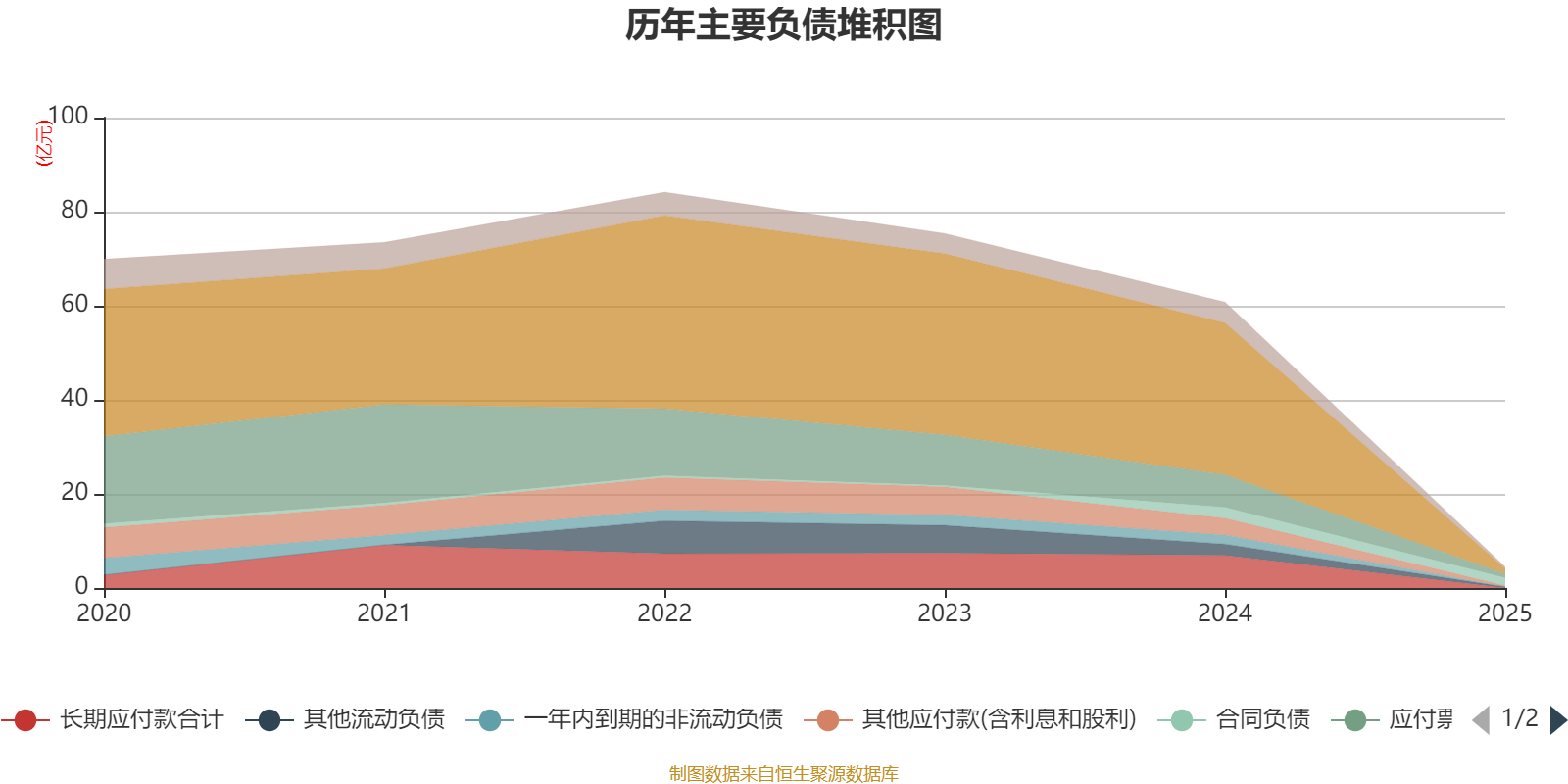 负债重大变化方面,截至2025年末,公司短期借款较上年末减少96.4%,占公司总资产比重下降34.87个百分点;合同负债较上年末减少30%,占公司总资产比重上升15.73个百分点;长期应付款合计较上年末减少100%,占公司总资产比重下降10.43个百分点;一年内到期的非流动负债较上年末减少100%,占公司总资产比重下降2.9个百分点。