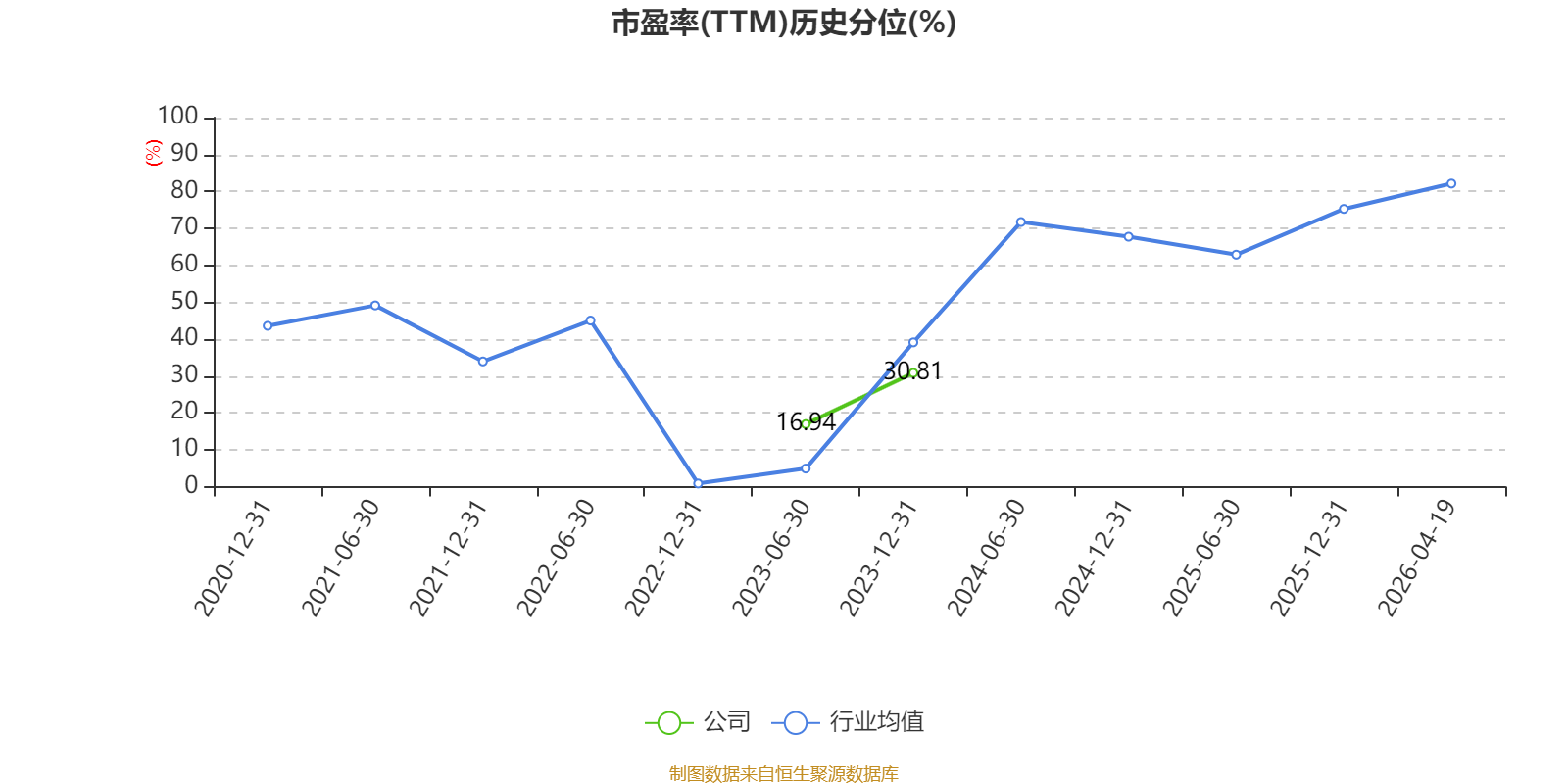 市盈率、市净率为负时,不显示当期分位数,会导致折线图中断。