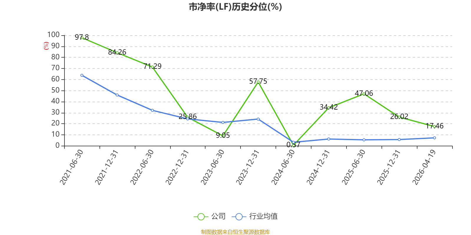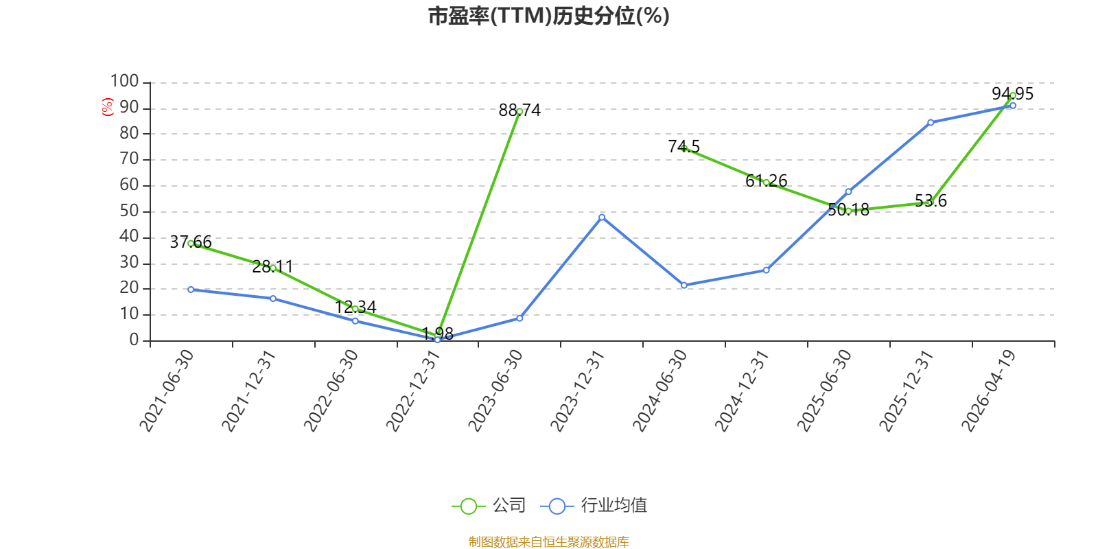 市盈率、市净率为负时,不显示当期分位数,会导致折线图中断。