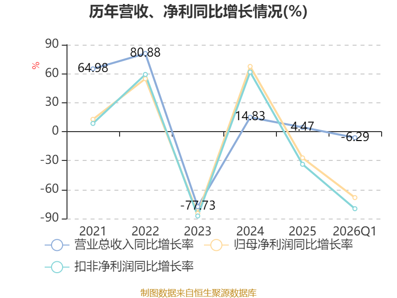 负债重大变化方面,截至2026年一季度末,公司应付票据及应付账款较上年末减少34.03%,占公司总资产比重下降0.9个百分点;应付职工薪酬较上年末减少54.73%,占公司总资产比重下降0.33个百分点;交易性金融负债合计较上年末减少35.57%,占公司总资产比重下降0.16个百分点;应交税费较上年末减少7.24%,占公司总资产比重下降0.08个百分点。
