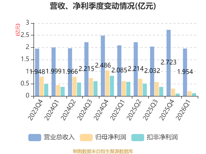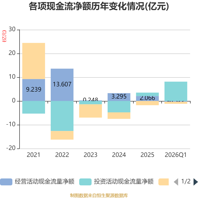 截至2026年一季度末,公司经营活动现金流净额为-3218.18万元,同比减少4292.7万元;筹资活动现金流净额-8586.59万元,同比减少8586.59万元;投资活动现金流净额8.14亿元,上年同期为-3448.46万元。