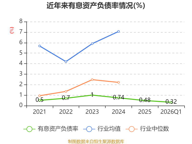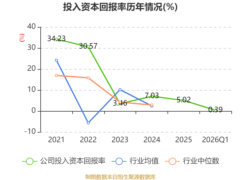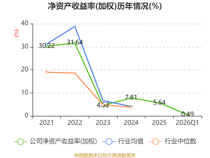 盈利能力方面, 2026年一季度公司加权平均净资产收益率为0.49%,同比下降1.1个百分点。公司2026年第一季度投入资本回报率为0.39%,较上年同期下降1.11个百分点。