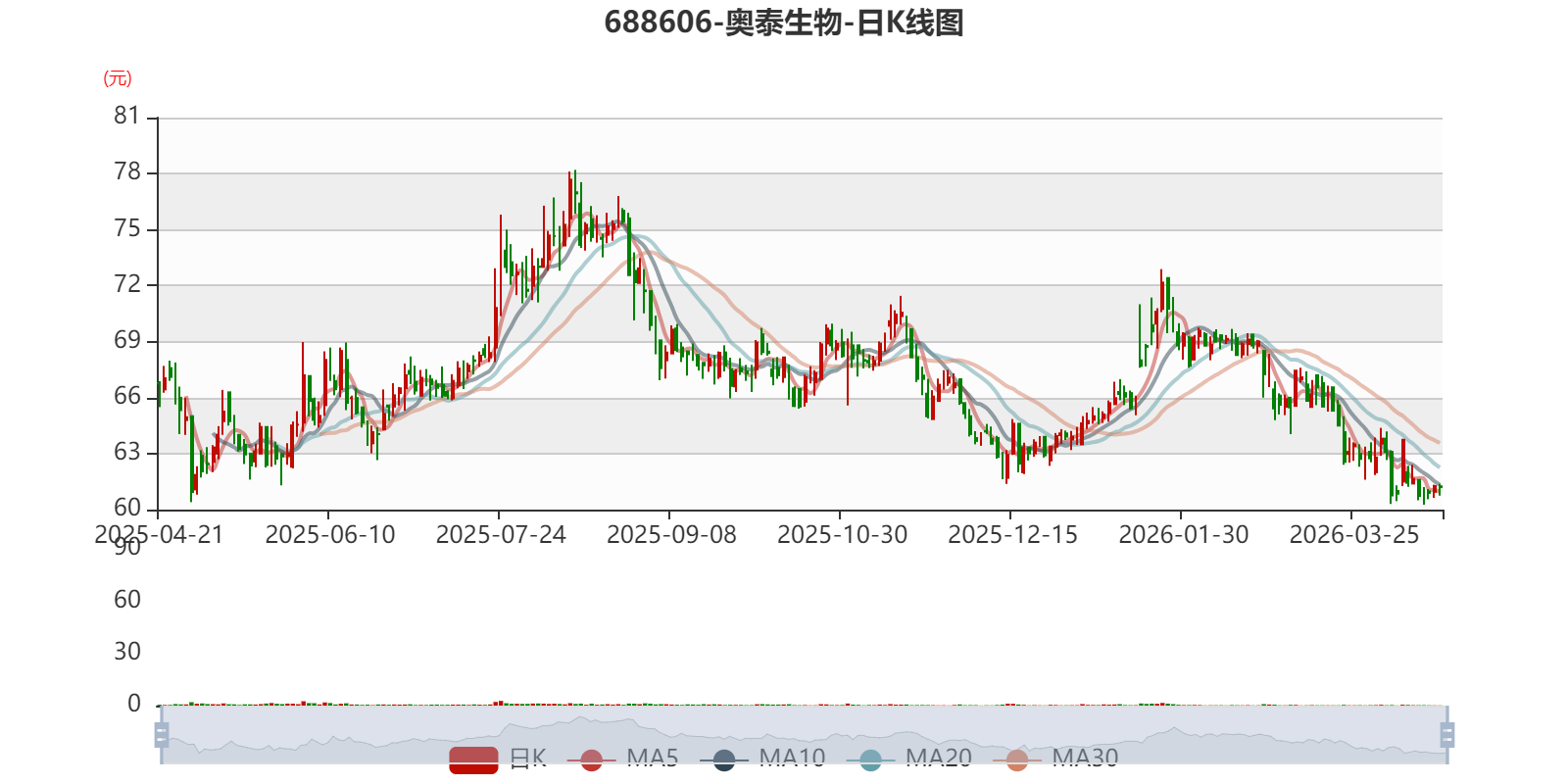 以4月17日收盘价计算,奥泰生物目前市盈率(TTM)约为27.2倍,市净率(LF)约1.25倍,市销率(TTM)约5.44倍。