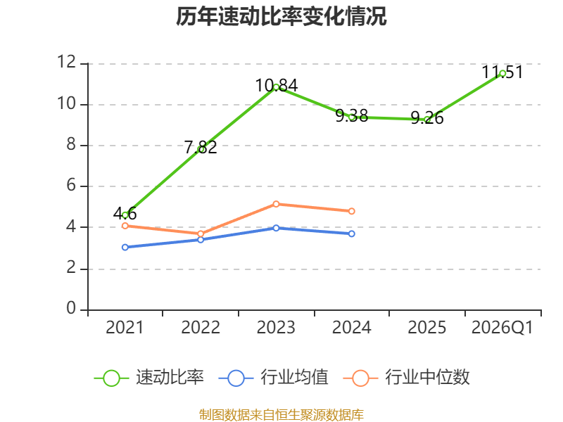 2026年第一季度,公司流动比率为12.36,速动比率为11.51。