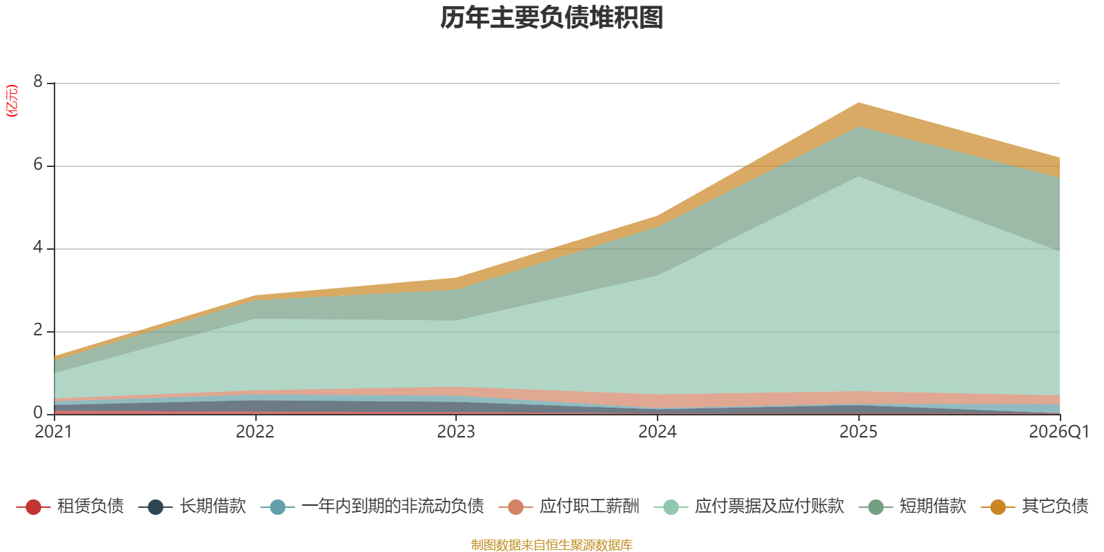 负债重大变化方面,截至2026年一季度末,公司应付票据及应付账款较上年末减少33.04%,占公司总资产比重下降7.47个百分点;短期借款较上年末增加47.14%,占公司总资产比重上升3.29个百分点;一年内到期的非流动负债较上年末增加556.19%,占公司总资产比重上升0.98个百分点;长期借款较上年末减少100%,占公司总资产比重下降0.97个百分点。