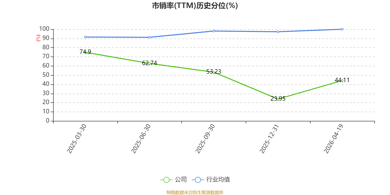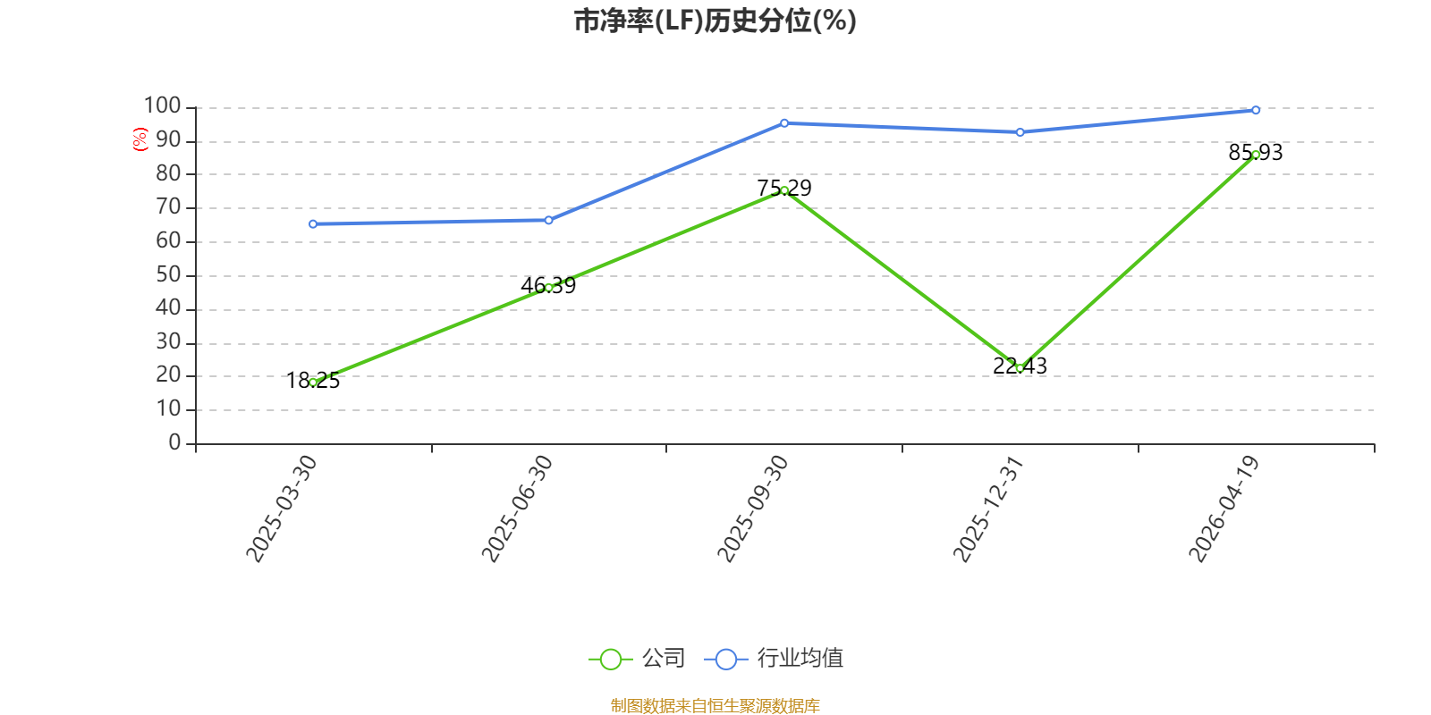 市盈率、市净率为负时,不显示当期分位数,会导致折线图中断。