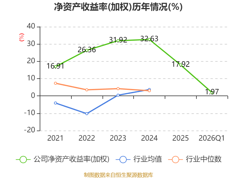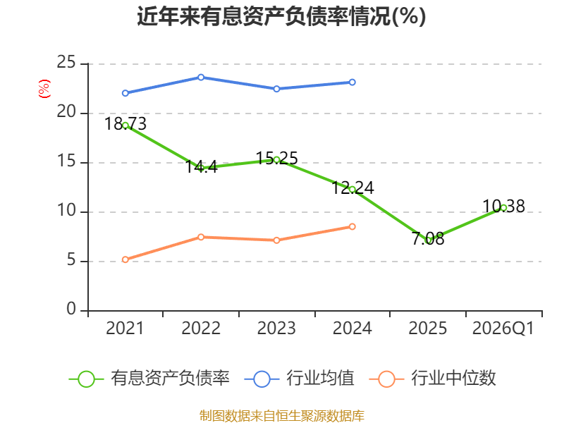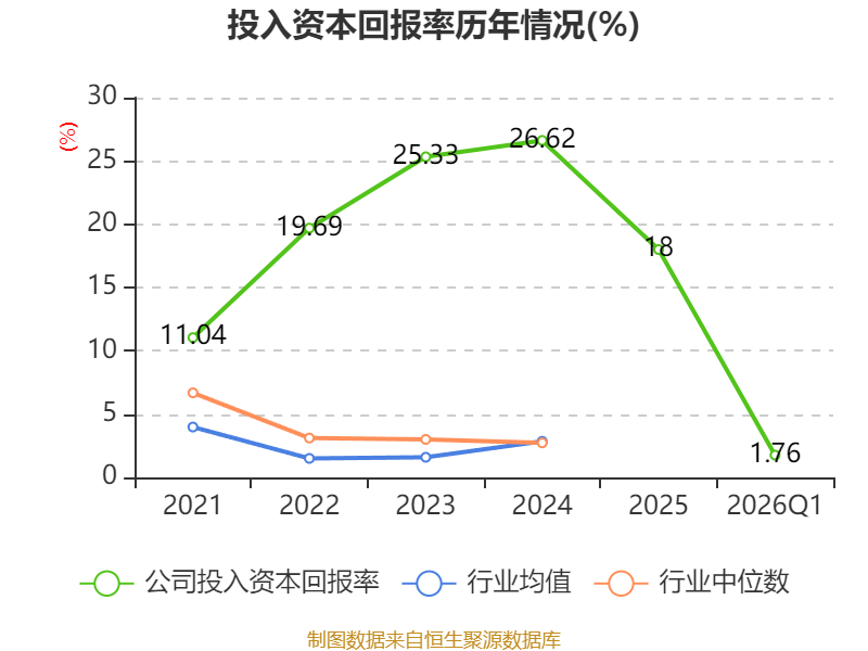 盈利能力方面, 2026年一季度公司加权平均净资产收益率为1.97%,同比下降2.71个百分点。公司2026年第一季度投入资本回报率为1.76%,较上年同期下降1.53个百分点。