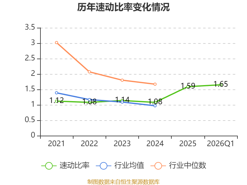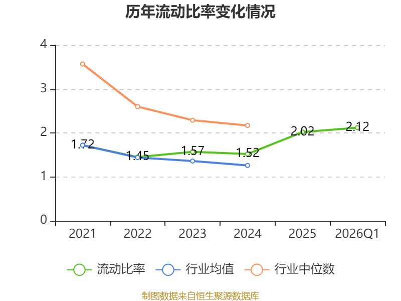 2026年第一季度,公司流动比率为2.12,速动比率为1.65。