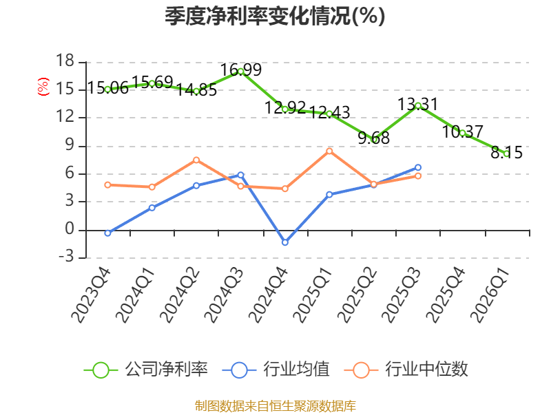 资产重大变化方面,截至2026年一季度末,公司货币资金较上年末减少29.95%,占公司总资产比重下降6.33个百分点;交易性金融资产合计较上年末增加68.23%,占公司总资产比重上升5.23个百分点;应收票据及应收账款较上年末减少29.49%,占公司总资产比重下降5.22个百分点;其他非流动资产较上年末增加220.7%,占公司总资产比重上升2.64个百分点。