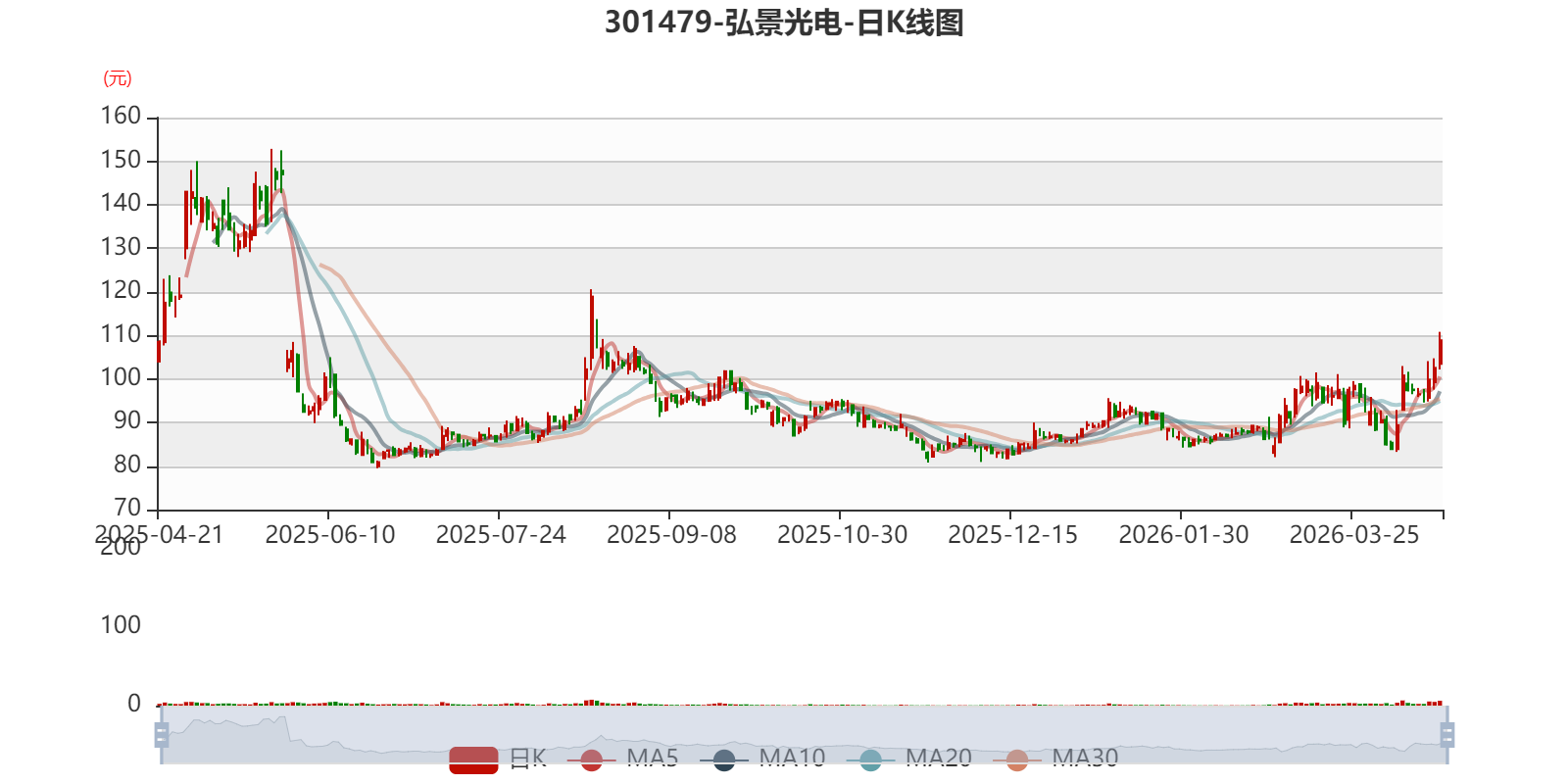 以4月17日收盘价计算,弘景光电目前市盈率(TTM)约为52.73倍,市净率(LF)约7.41倍,市销率(TTM)约5.61倍。