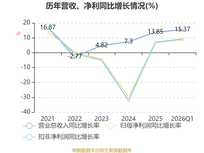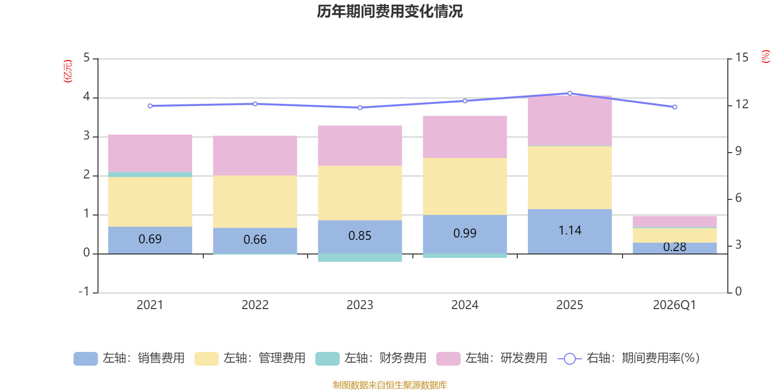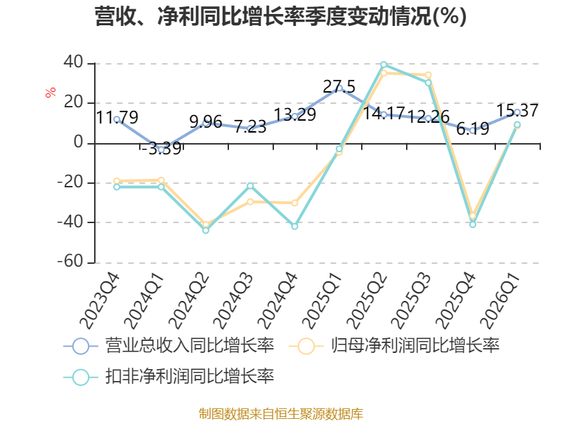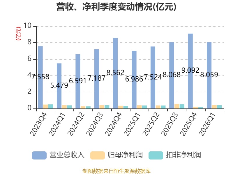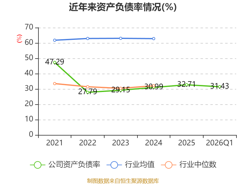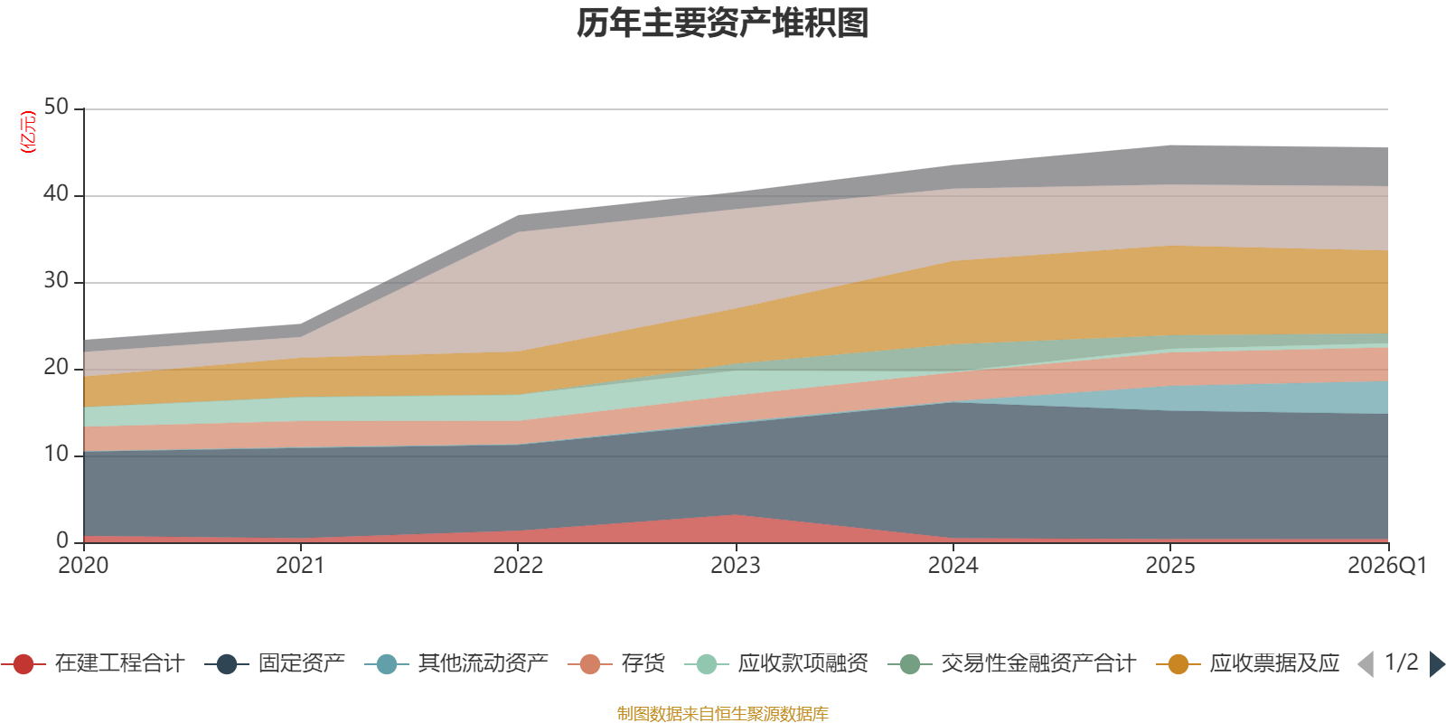 资产重大变化方面,截至2026年一季度末,公司其他流动资产较上年末增加31.97%,占公司总资产比重上升2.05个百分点;应收票据及应收账款较上年末减少7.62%,占公司总资产比重下降1.61个百分点;交易性金融资产合计较上年末减少27.72%,占公司总资产比重下降0.94个百分点;货币资金较上年末增加5.51%,占公司总资产比重上升0.94个百分点。