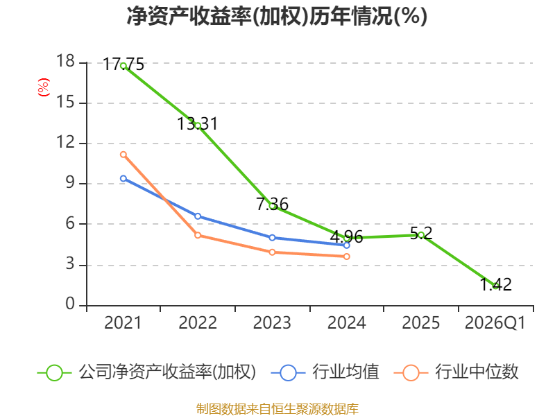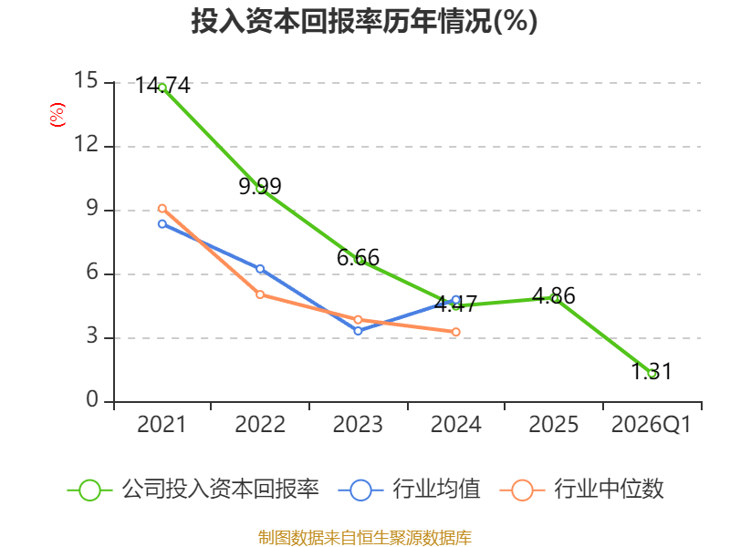 盈利能力方面, 2026年一季度公司加权平均净资产收益率为1.42%,同比上升0.08个百分点。公司2026年第一季度投入资本回报率为1.31%,较上年同期上升0.07个百分点。