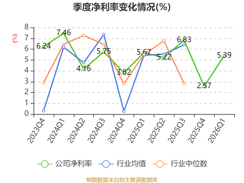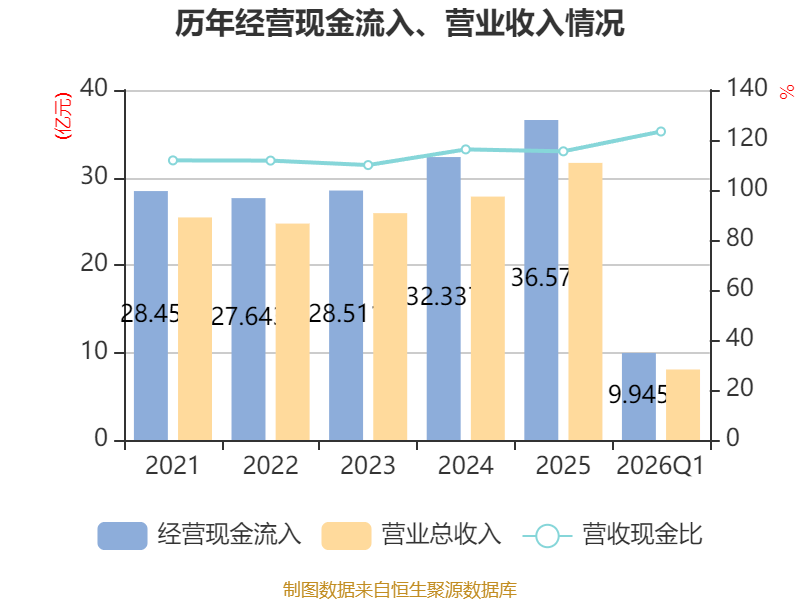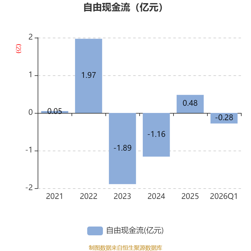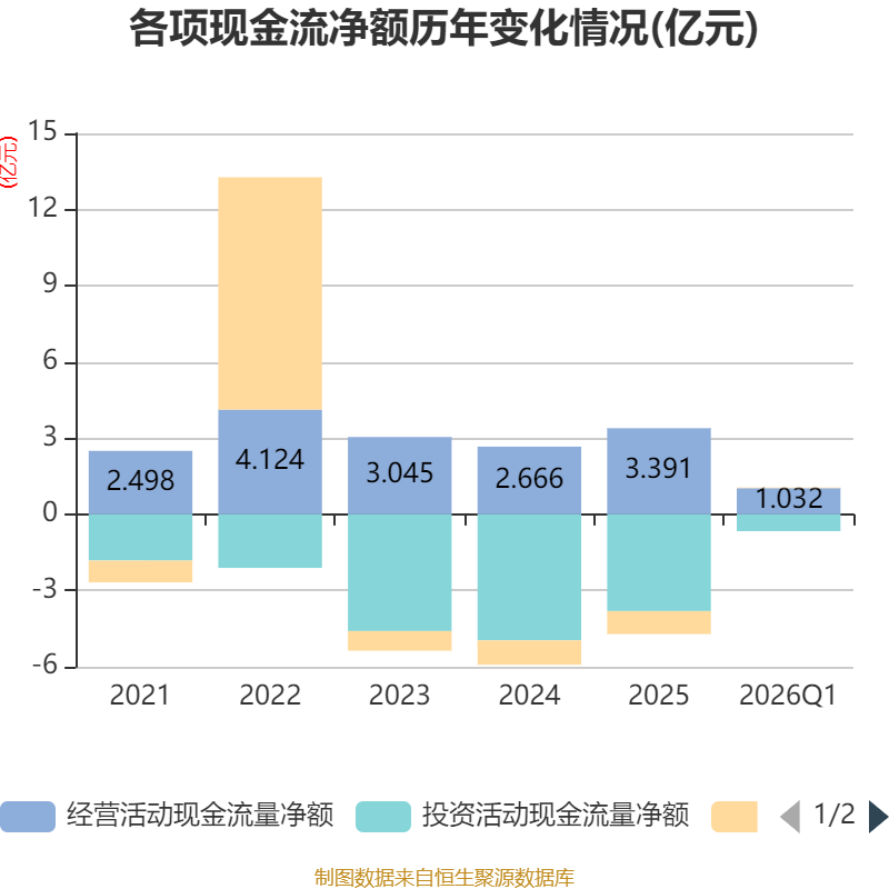 截至2026年一季度末,公司经营活动现金流净额为1.03亿元,同比增长3.25%;筹资活动现金流净额234.27万元,同比减少333.07万元;投资活动现金流净额-6622.2万元,上年同期为-1.75亿元。