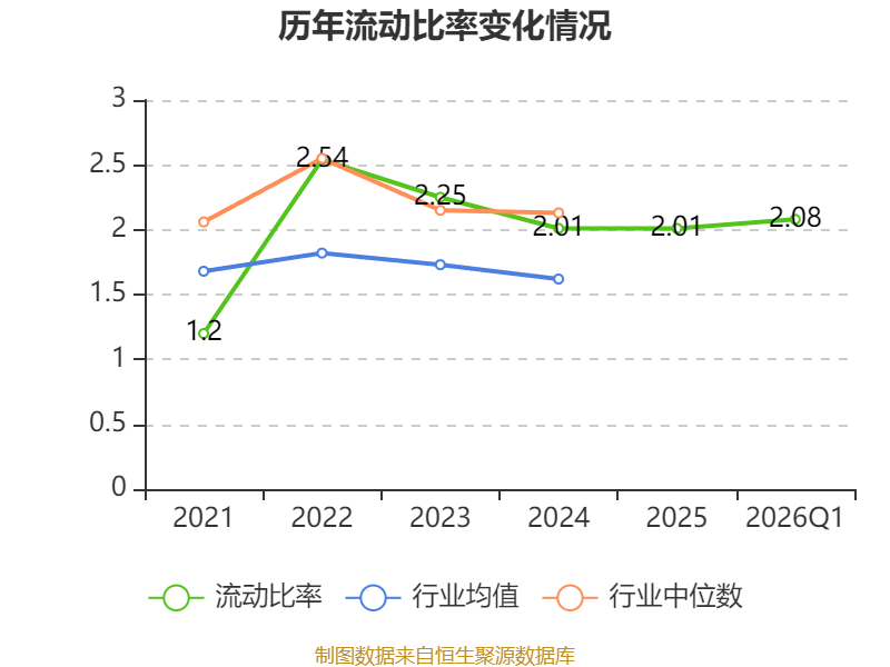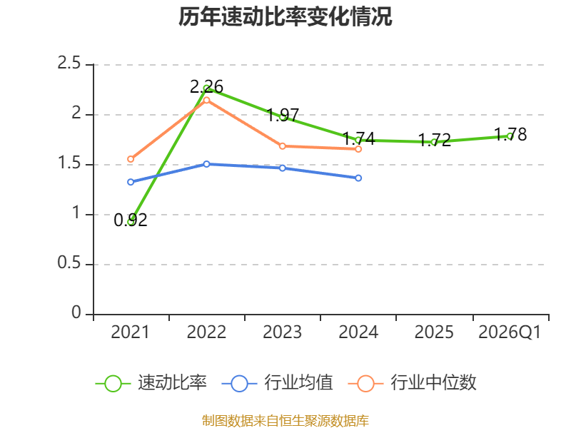 2026年第一季度,公司流动比率为2.08,速动比率为1.78。