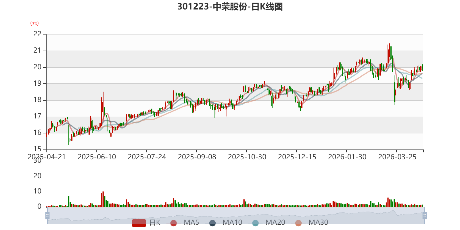 中证智能财讯中荣股份(301223)4月20日披露2026年第一季度报告。公司实现营业总收入8.06亿元,同比增长15.37%;归母净利润4274.56万元,同比增长8.61%;扣非净利润4027.19万元,同比增长9.19%;经营活动产生的现金流量净额为1.03亿元,同比增长3.25%;报告期内,中荣股份基本每股收益为0.22元,加权平均净资产收益率为1.42%。