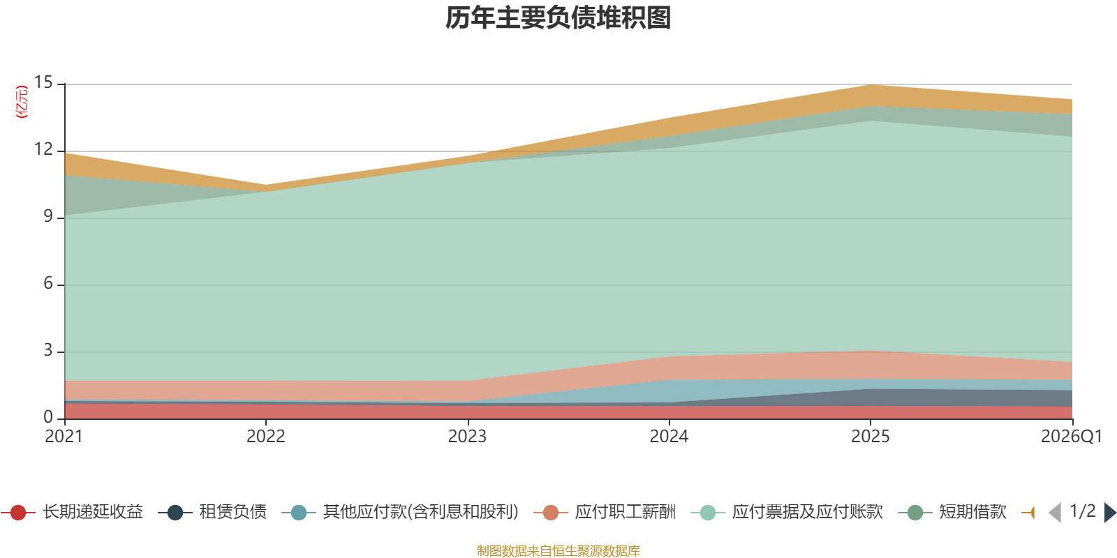 负债重大变化方面,截至2026年一季度末,公司应付职工薪酬较上年末减少36.79%,占公司总资产比重下降1.01个百分点;短期借款较上年末增加51.85%,占公司总资产比重上升0.76个百分点;长期借款较上年末减少59.46%,占公司总资产比重下降0.48个百分点;应付票据及应付账款较上年末减少1.94%,占公司总资产比重下降0.32个百分点。