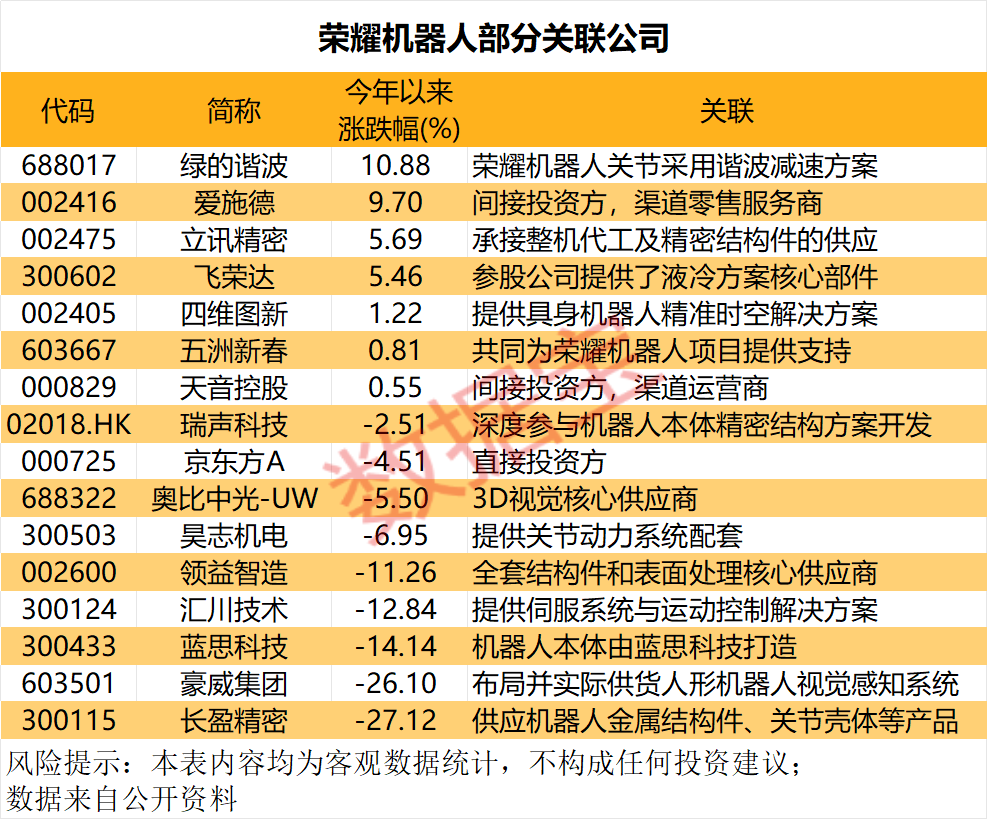 立讯精密是荣耀高端制造的长期合作方,公司凭借消费电子领域成熟的精密制造经验,快速适配机器人生产需求。