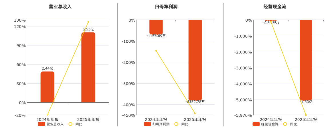 公司截至2025年12月31日,*ST返利营业总收入为5.53亿元。截至2025年12月31日,*ST返利归母净利润为-6332.78万元,较去年同报告期归母净利润减少5165.89万元。截至2025年12月31日,*ST返利经营活动现金净流入为-1.33亿元,较去年同报告期经营活动现金净流入减少1.31亿元。