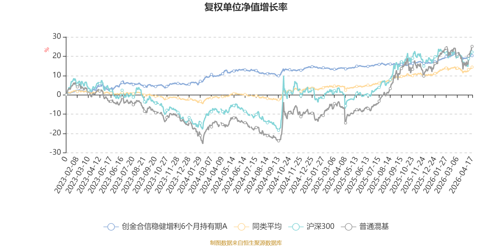 截至4月17日,创金合信稳健增利6个月持有期A近三个月复权单位净值增长率为1.32%,位于同类可比基金161/629;近半年复权单位净值增长率为3.76%,位于同类可比基金188/629;近一年复权单位净值增长率为5.64%,位于同类可比基金421/629;近三年复权单位净值增长率为15.29%,位于同类可比基金162/581。