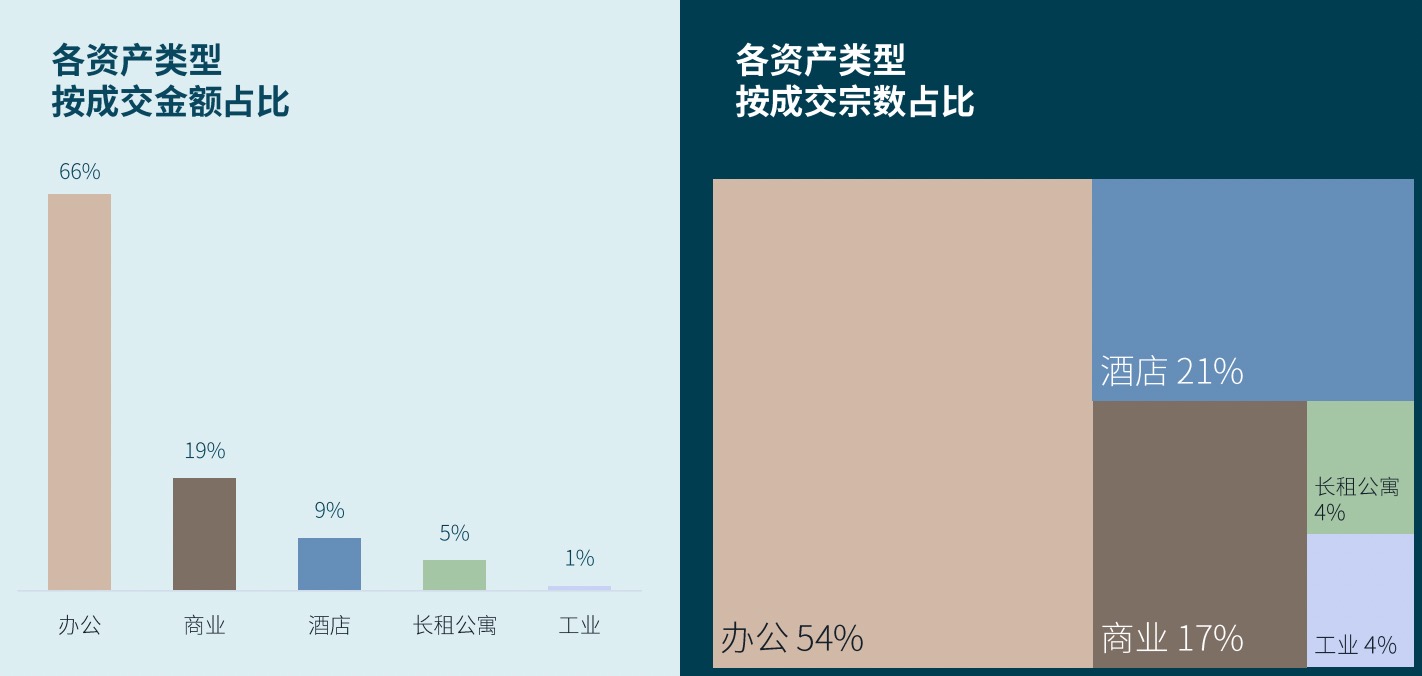 从资产类型来看,各路资金齐聚核心办公资产。