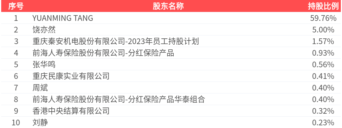 公司股东户数为1.65万户,前十大股东持股数量为3.05亿股,占总股本比例为69.58%,前十大股东持股情况如下: