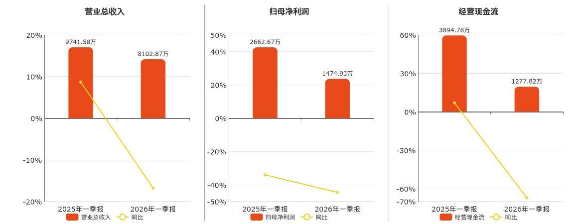 原标题:正海生物(300653.SZ)2026年一季报净利润为1474.93万元、较去年同期下降44.61%