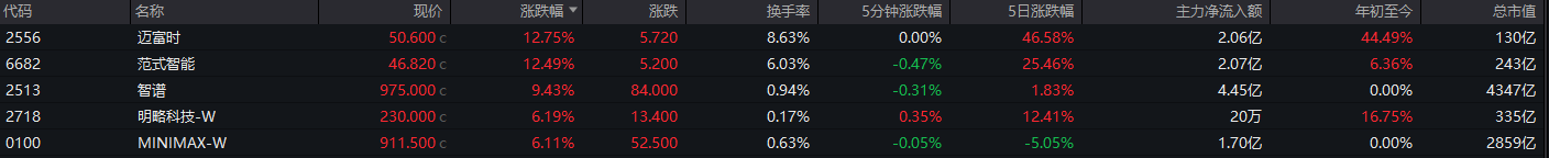 GEO概念涨幅居前,迈富时、范式智能涨超12%,智谱涨超9%;