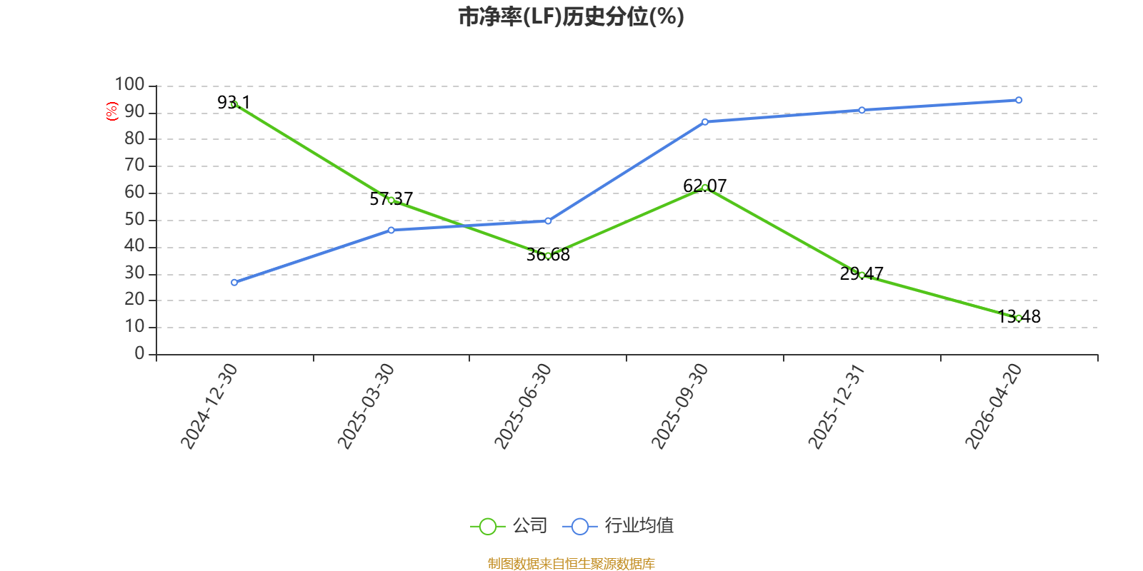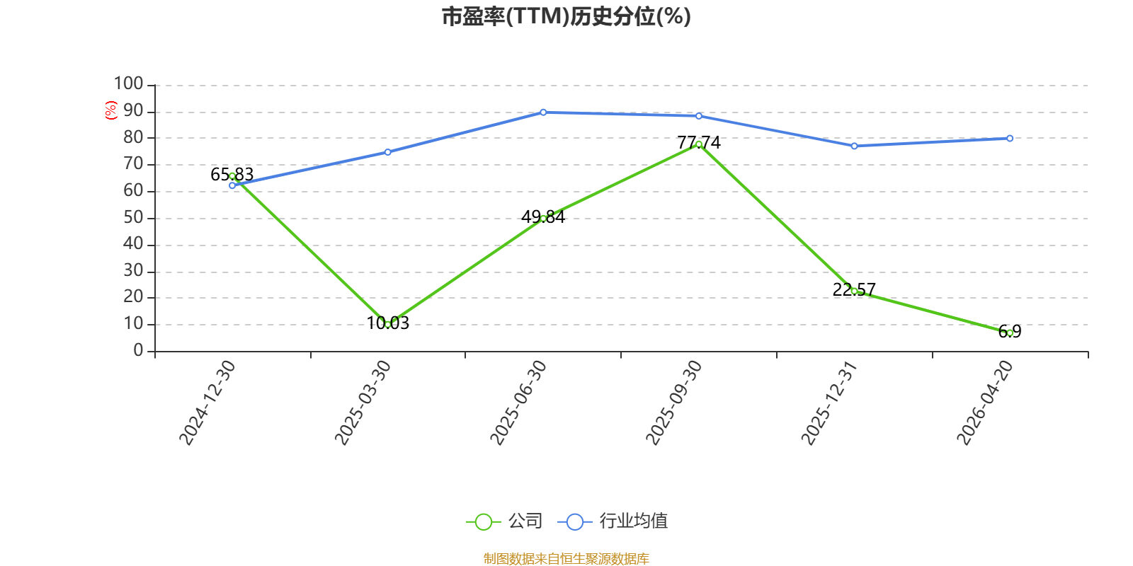 市盈率、市净率为负时,不显示当期分位数,会导致折线图中断。