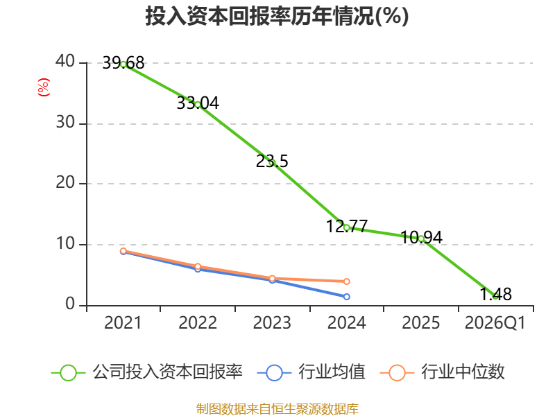 盈利能力方面, 2026年一季度公司加权平均净资产收益率为1.77%,同比上升0.35个百分点。公司2026年第一季度投入资本回报率为1.48%,较上年同期上升0.44个百分点。