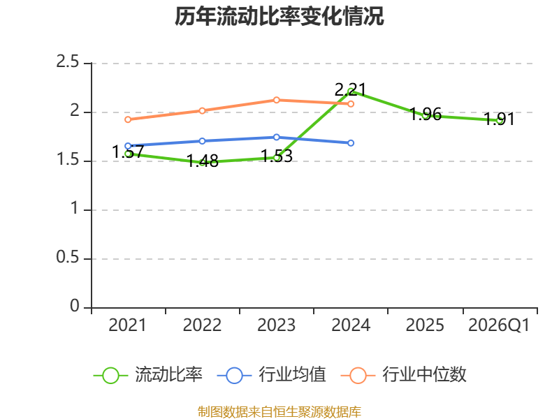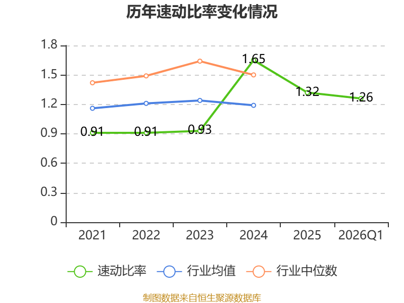 2026年第一季度,公司流动比率为1.91,速动比率为1.26。