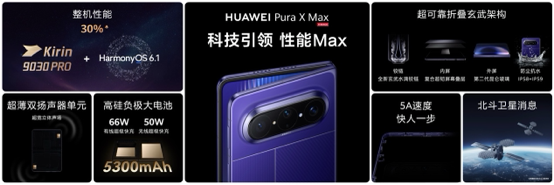 同时,核心配置上更加硬核,华为Pura X Max搭载麒麟9030 Pro芯片,联动鸿蒙操作系统6.1深度芯软协同,整机性能提升30%。
