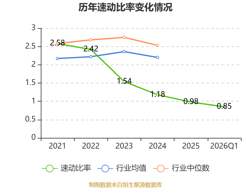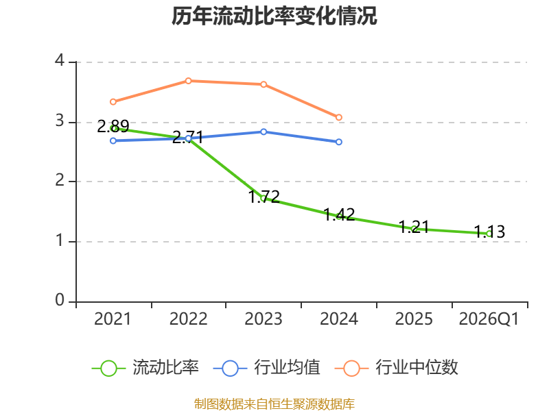 2026年第一季度,公司流动比率为1.13,速动比率为0.85。