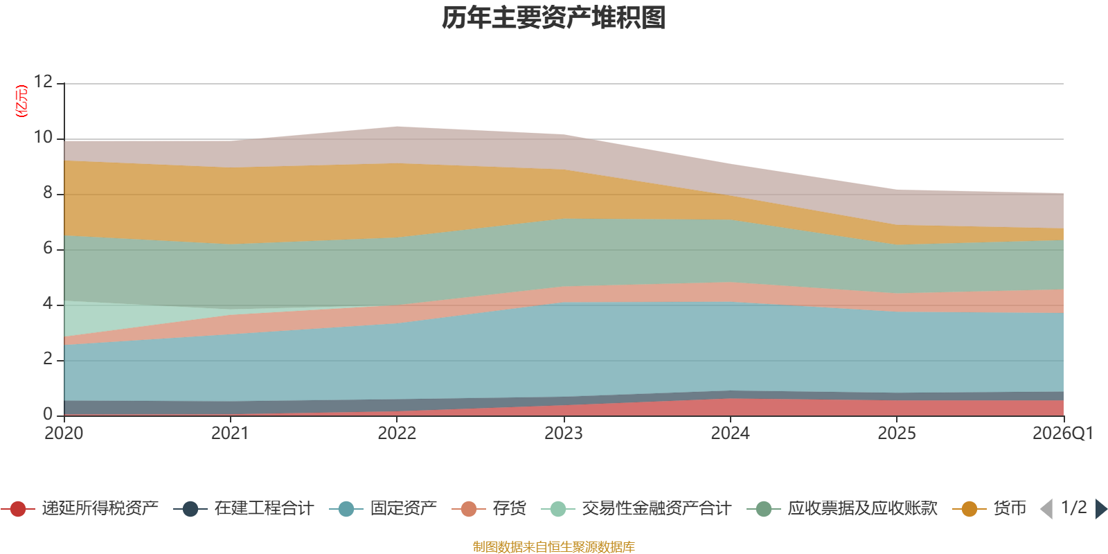 资产重大变化方面,截至2026年一季度末,公司货币资金较上年末减少41.42%,占公司总资产比重下降3.57个百分点;存货较上年末增加27.66%,占公司总资产比重上升2.46个百分点;应收票据及应收账款较上年末增加1.64%,占公司总资产比重上升0.7个百分点;在建工程合计较上年末增加17.32%,占公司总资产比重上升0.64个百分点。