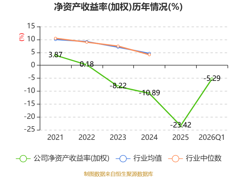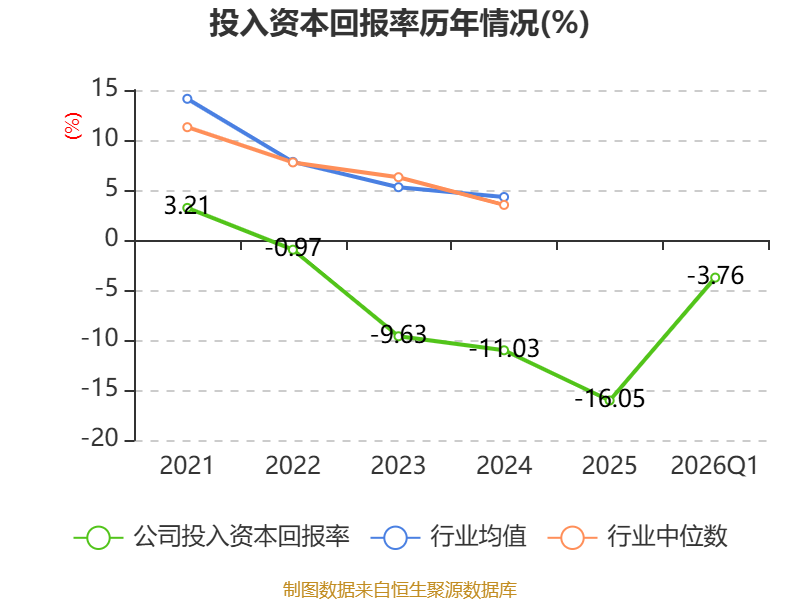 盈利能力方面, 2026年一季度公司加权平均净资产收益率为-5.29%,同比上升0.34个百分点。公司2026年第一季度投入资本回报率为-3.76%,较上年同期上升0.39个百分点。