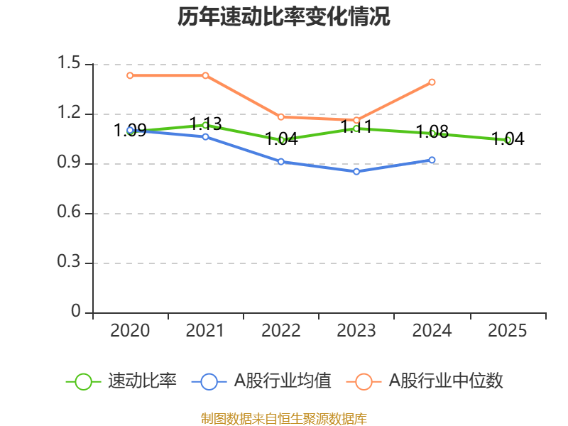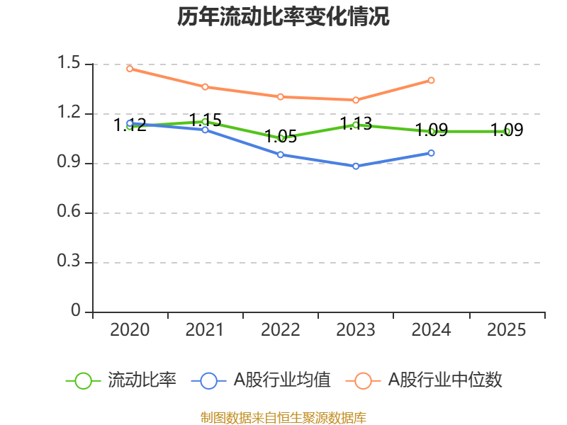 2025年,公司流动比率为1.09,速动比率为1.04。