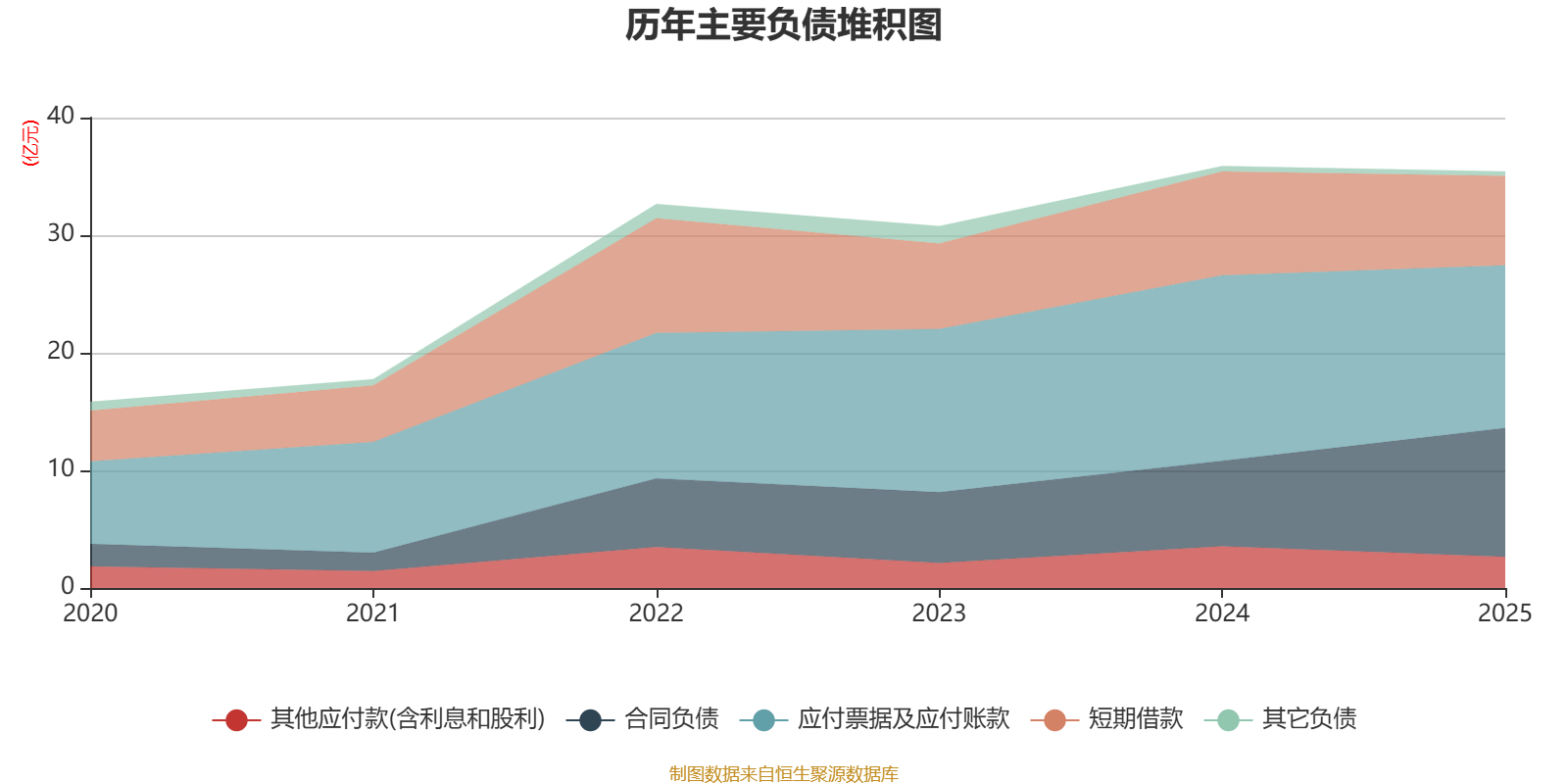 负债重大变化方面,截至2025年末,公司合同负债较上期末增加50.91%,占公司总资产比重上升8.61个百分点;应付票据及应付账款较上期末减少12.35%,占公司总资产比重下降4.24个百分点;短期借款较上期末减少13.94%,占公司总资产比重下降2.69个百分点;其他应付款(含利息和股利)较上期末减少25.45%,占公司总资产比重下降2.02个百分点。