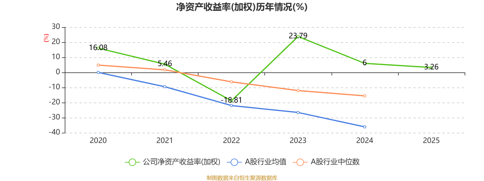 数据显示,2025年公司平均净资产收益率为3.26%,较上年同期下降2.74个百分点。