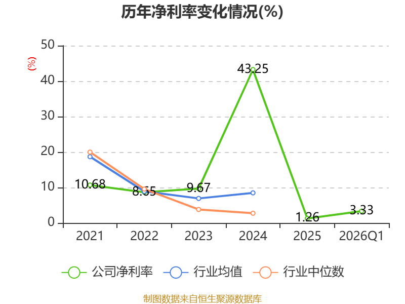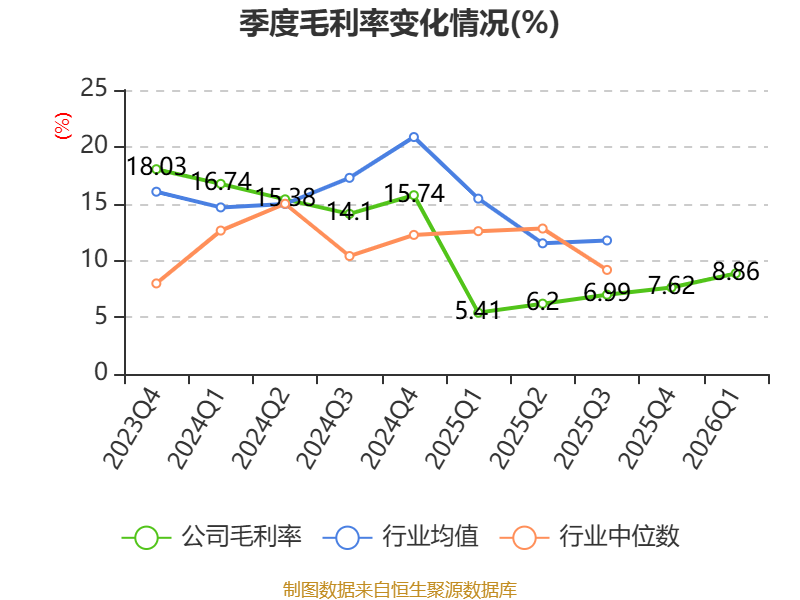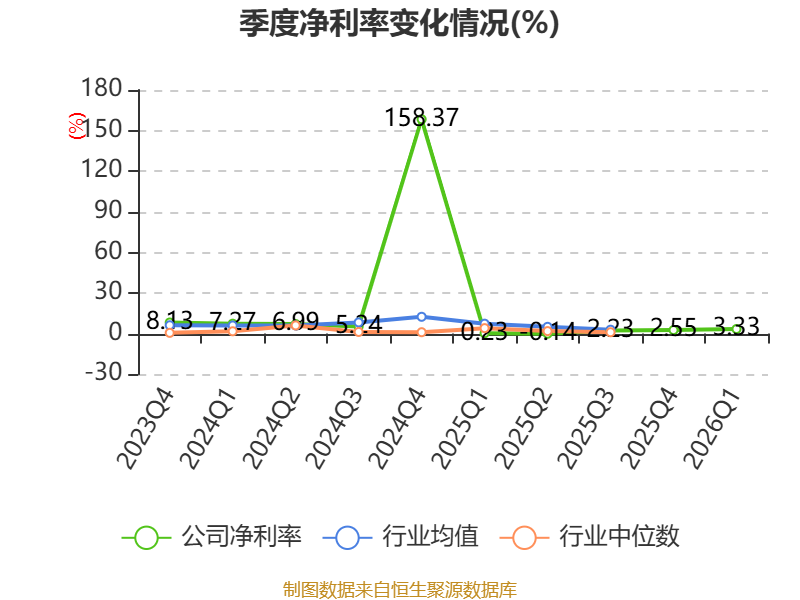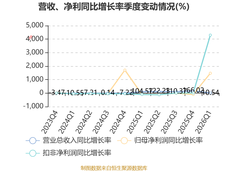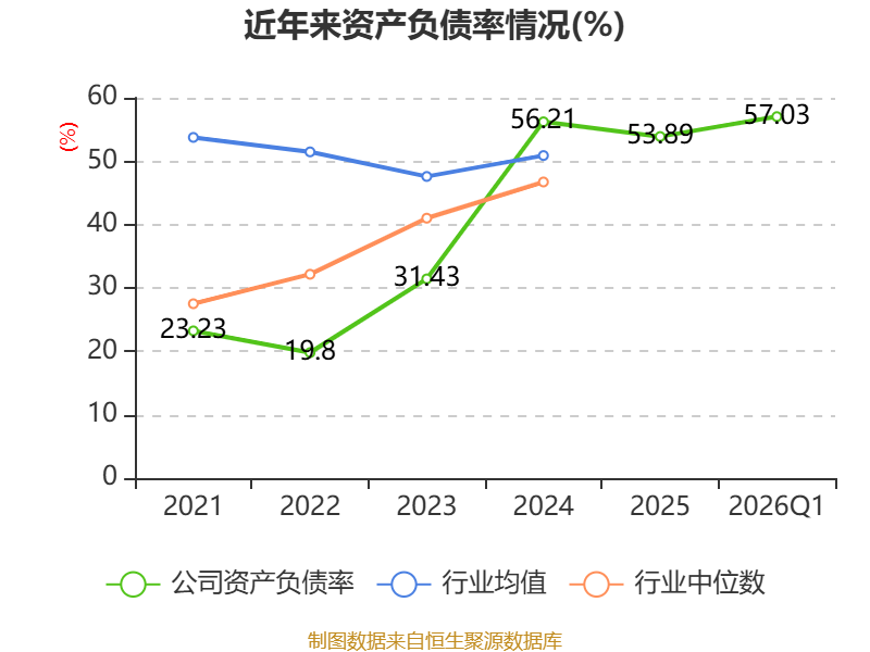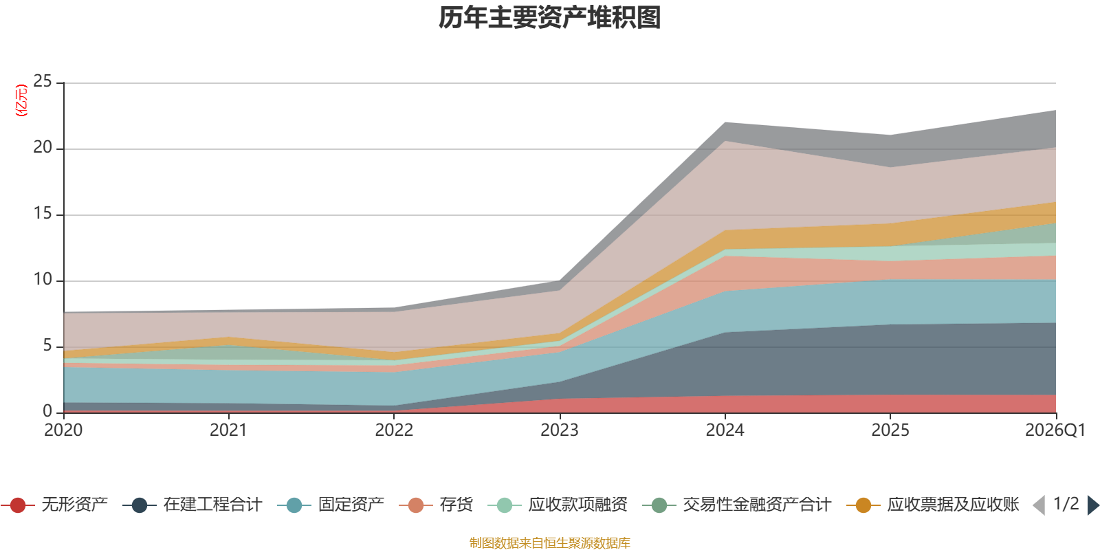 资产重大变化方面,截至2026年一季度末,公司交易性金融资产合计占公司总资产的6.55%,上年末为0;货币资金较上年末减少2.67%,占公司总资产比重下降2.15个百分点;固定资产较上年末减少4.23%,占公司总资产比重下降1.98个百分点;在建工程合计较上年末增加2.7%,占公司总资产比重下降1.46个百分点。