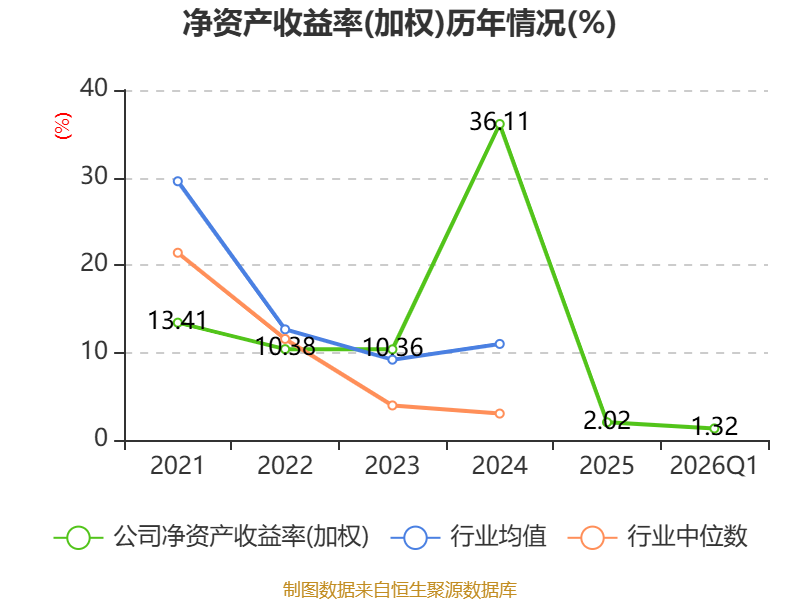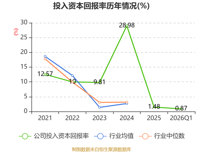 盈利能力方面, 2026年一季度公司加权平均净资产收益率为1.32%,同比上升1.24个百分点。公司2026年第一季度投入资本回报率为0.87%,较上年同期上升0.83个百分点。